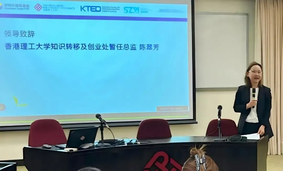 理大知识转移及创业处暂任总监陈翠芳出席推介会,代表理大感谢深天使对理大科创的关注和支持,鼓励师生践行理大“创新型世界一流大学”的理念,将更多成果从书架带到货架。罗秋媚助理总监介绍了理大polyventure赋能科创体系,已培育 7600+企业家、600 余家初创企业,获国际创新奖项 500 余项,人工智能与智能硬件领域科研实力雄厚、项目储备充足。此次携手深天使,希望与深圳早期投资先锋接力陪跑、助力理大科创项目行稳致远。