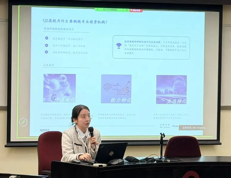 汉能创投副总裁潘韵竹以《专业投资人甄选并赋能前沿科技转化项目的底层逻辑》为题,通过回答6个问题分享投资前沿科技转化的心得:投资机构为什么要去高校挖掘项目?高校为什么要拥抱专业投资机构?汉能是如何发掘和赋能前沿科技转化项目的?什么样的项目会得到投资人青睐?前沿科技转化项目有哪些常见问题,又如何应对?什么样的资本是耐心资本?