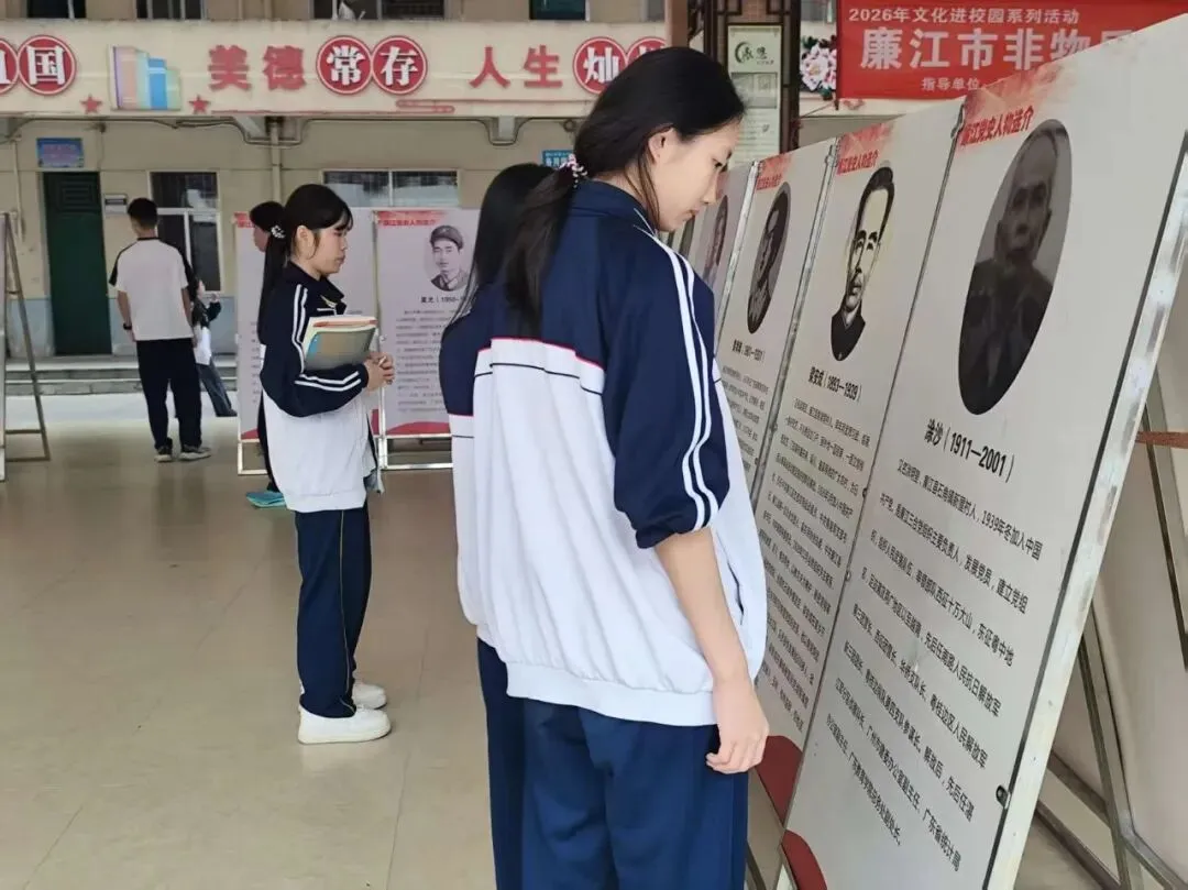 2026年3月18日,在廉江市文化广电旅游体育局的指导下,廉江市博物馆在廉江市第五中学展出《廉江党史人物选介》、《红色印记--廉江市革命旧址、遗址图片展》图片展。