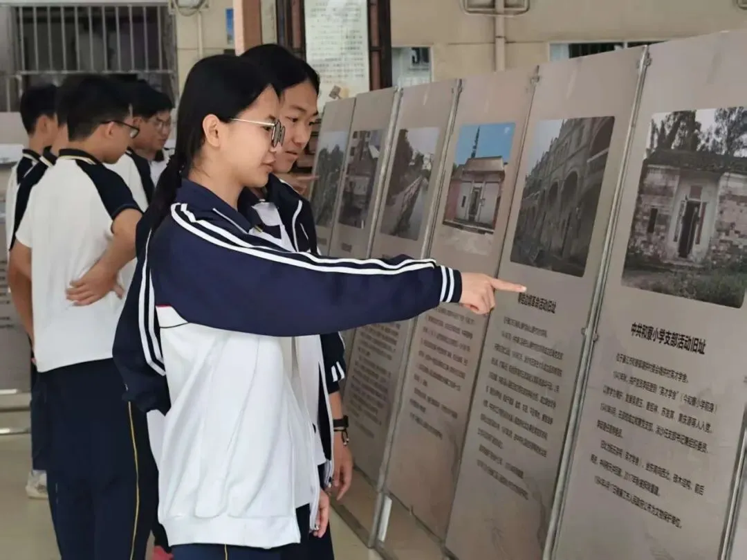 《红色印记--廉江市革命旧址、遗址图片展》展览通过珍贵的历史照片、详实的文字资料,系统梳理了廉江从大革命时期到解放战争时期的革命斗争脉络。从早期党组织的建立,到抗日烽火中的浴血奋战,再到解放廉江的胜利曙光,一幅幅图片、一段段文字,将学生们带回那段烽火连天的峥嵘岁月,让大家深刻感受到革命先辈们为了民族独立和人民解放,不畏艰险、前赴后继的崇高精神。