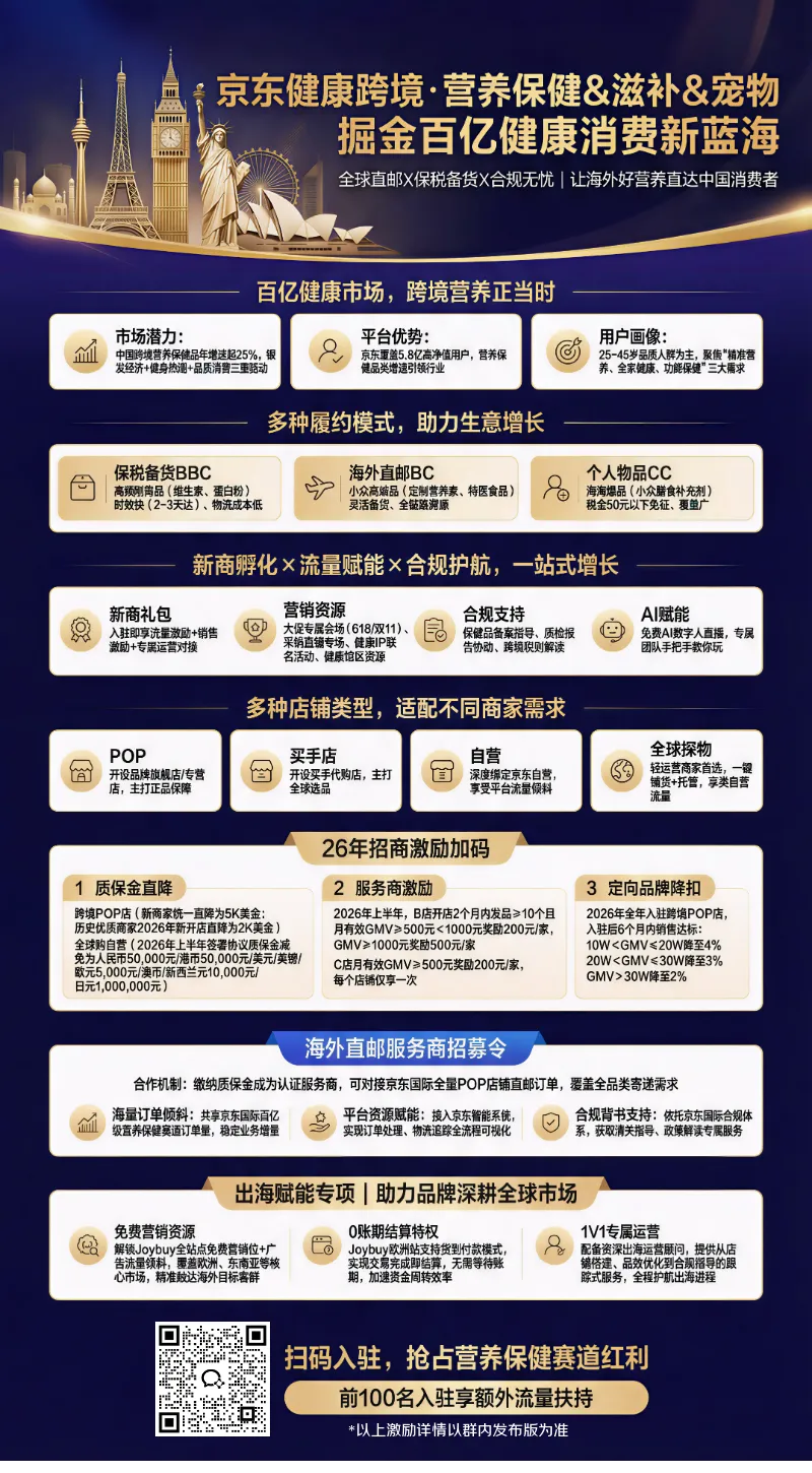 2026招商激励重磅加码,掘金百亿健康消费新蓝海 全球直邮×保税备货×合规无忧 全球营养好物,一键直达中国消费者 诚邀全球品牌共启财富新赛道