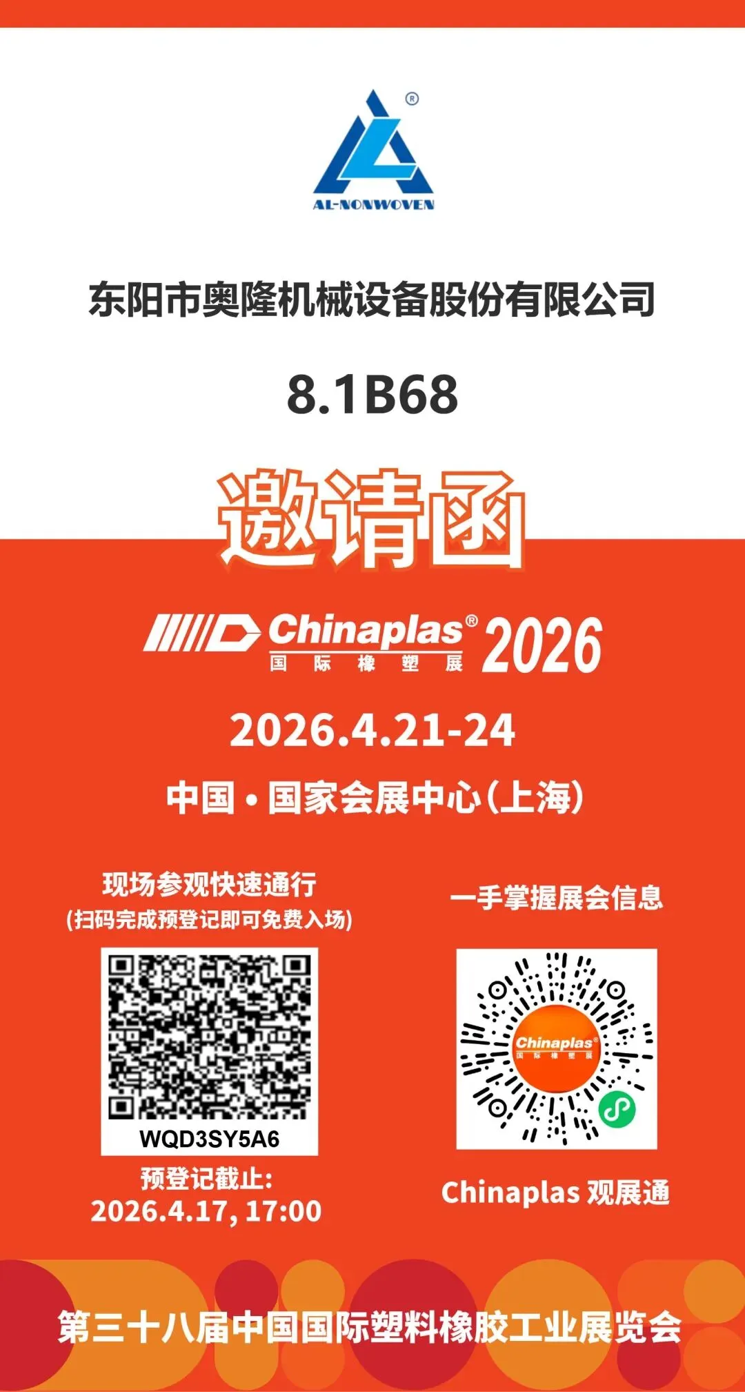 CHINAPLAS 2026国际橡塑展将于2026年4月21日至24日在上海·虹桥·国家会展中心盛大举办,值此行业盛会之际,奥隆股份诚挚邀请您莅临我司展位,共探行业升级新机遇,共赢开放合作新未来。
