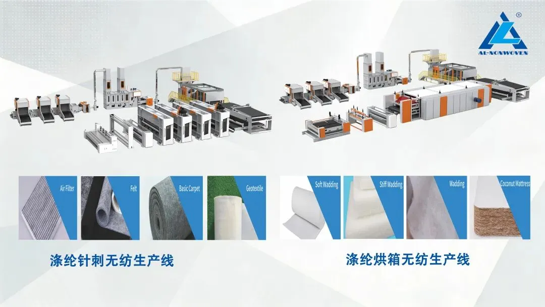 地毯生产线,无胶棉生产线,土工布生产线,皮革基布生产线以及过滤棉,隔音棉生产线,汽车内饰等。