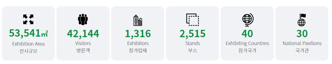 韩国首尔国际食品展由大韩贸易投资振兴公社主办,自1983年首次举办以来,2026年将是第44届,是韩国食品行业规模最大、最重要的贸易展览会。该展在韩国国际展览中心举行,会场占地面积76121平方米。2025年该展吸引了51个国家和地区的1600多家企业参展,共2900多个展位。展会期间有来自70个国家和地区的食品进口商、生产制造商、零售商和服务行业的53000多名专业观众到会参观采购。、
