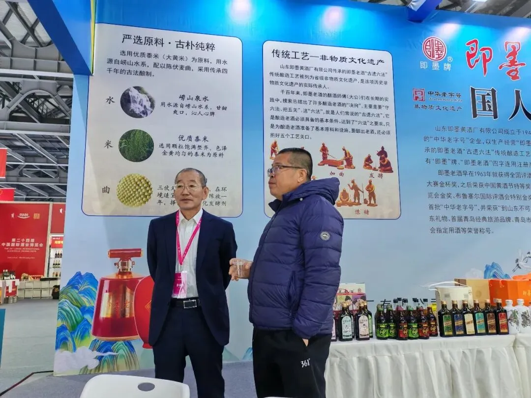 展会期间,即墨老酒以“黄酒本源·醇香传世”为主题打造文化展位,通过品牌宣传、产品品鉴、非遗技艺推介等多元活动,向全球客商展现中国黄酒的深厚底蕴与创新活力。