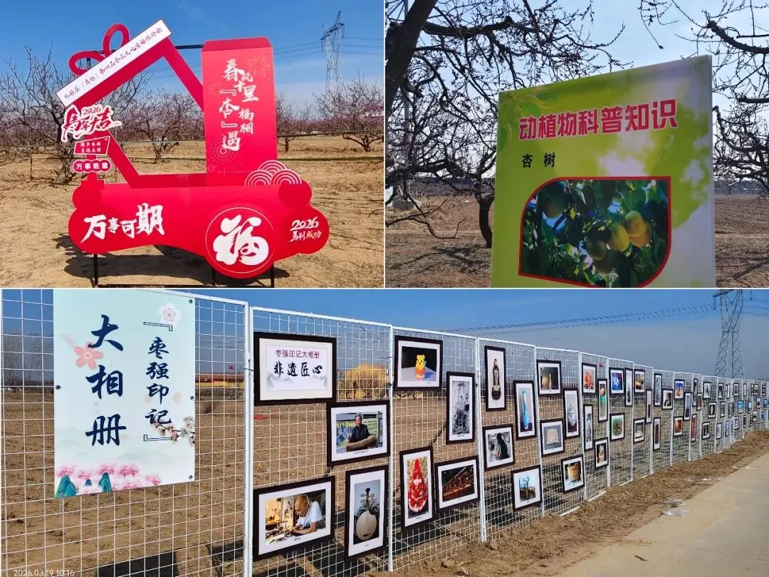 现场还设置了“枣强印记”大相册及杏花秋千、写给春天的信、人生时钟等5个新中式国风网红打卡地,手作杏坊、杏遇花亭兼具非遗体验与休憩打卡功能,杏林翰墨国画展、翰墨杏韵书画展同步开展,县内外书画名家现场挥毫创作、互动赠字,让墨香与花香交织相融。