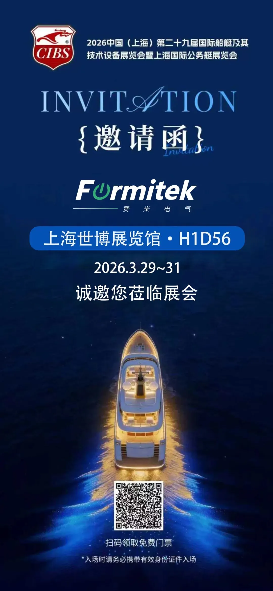 费米电气(舟山)有限公司诚挚邀请您莅临展会现场,走进上海世博展览馆·H1D56 展位,共探公务艇与海洋装备电气系统新趋势、新机遇。