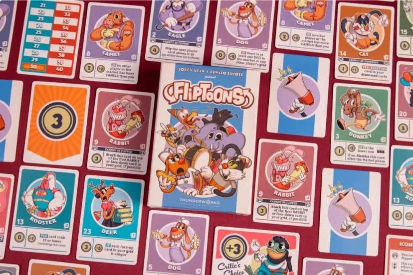 《翻转星途》的美术风格致敬了20世纪30年代的黄金动画时代——游戏由插画师Diego Sá精心绘制,每一张卡牌都充满了复古动画的灵魂:古灵精怪的兔子、趾高气扬的公鸡,让人哭笑不得的猪,每个角色都个性迥异、活灵活现。