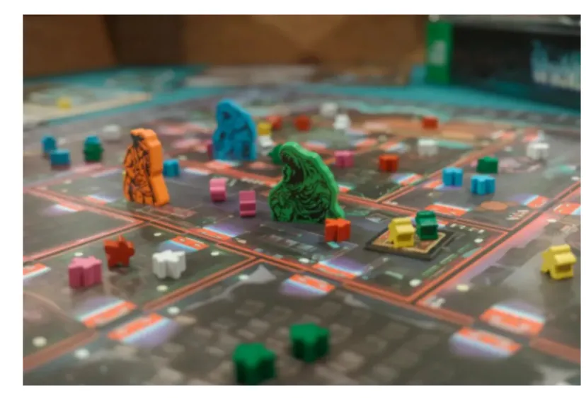 《幽灵盛宴》是一款支持1-5名玩家游玩的非对称对抗桌游,玩家将扮演风格迥异,个性鲜明的怪物,在影院的各个房间中穿梭,制造混乱吓跑观众、吞噬目标,并利用自己独特的能力与其他怪物一决高下,争夺“恐怖之王”称号。当终场谢幕亮起,唯有最令人胆寒的怪物方能摘得桂冠!