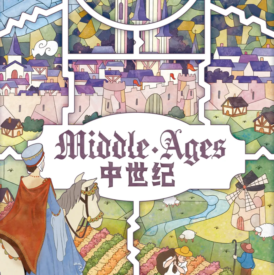 《中世纪》采用了中世纪教堂的玻璃彩绘画风,艺术风格明显,颜色鲜明对比强烈,复古又富有装饰性,十分契合中世纪主题。游戏配件使用了手绘插画风格,场景描绘更加柔和。人物、马匹、风车等一系列元素使用了更为自然的线条与色彩过渡,呈现温暖轻松的氛围,带来了生动有趣的视觉体验。