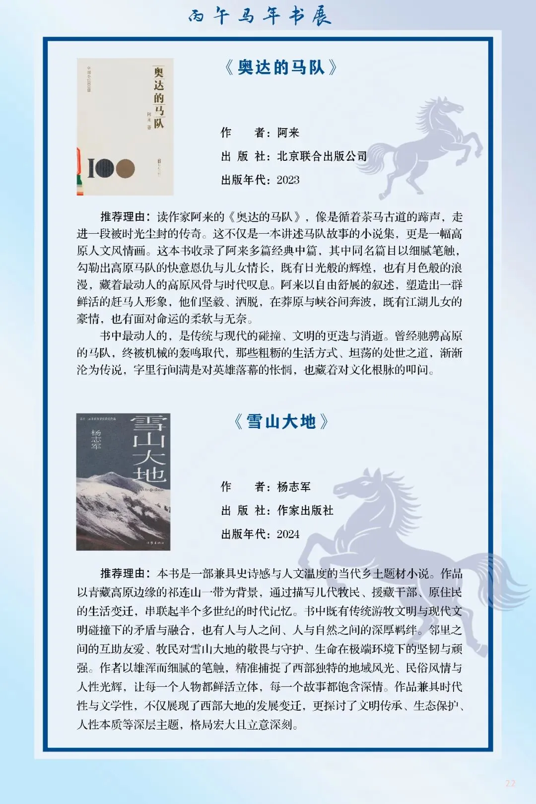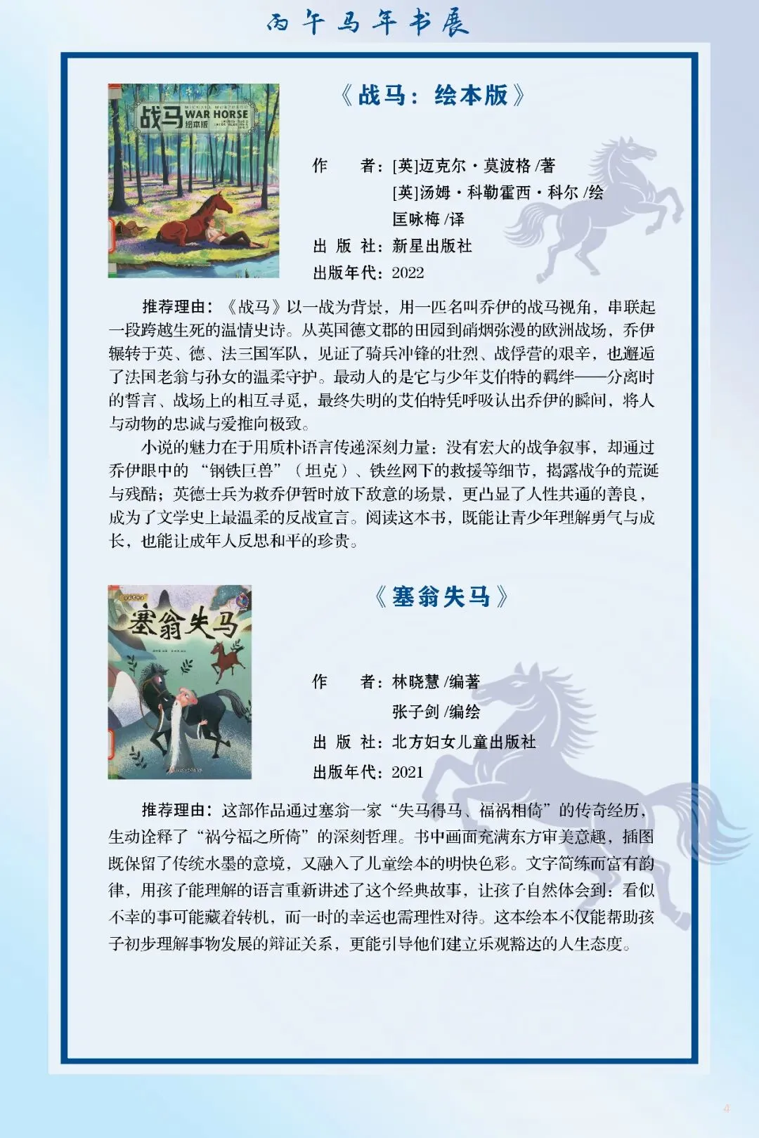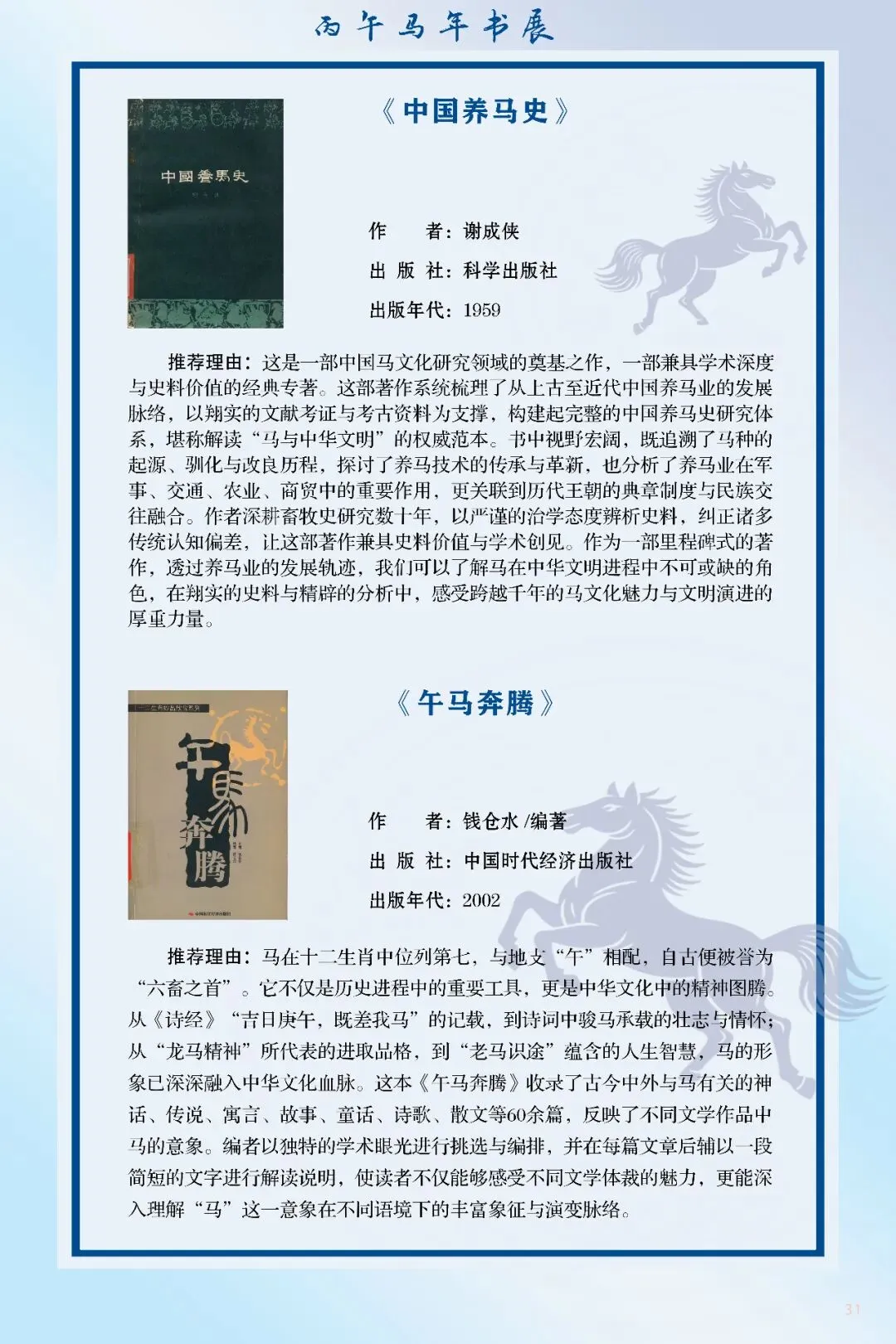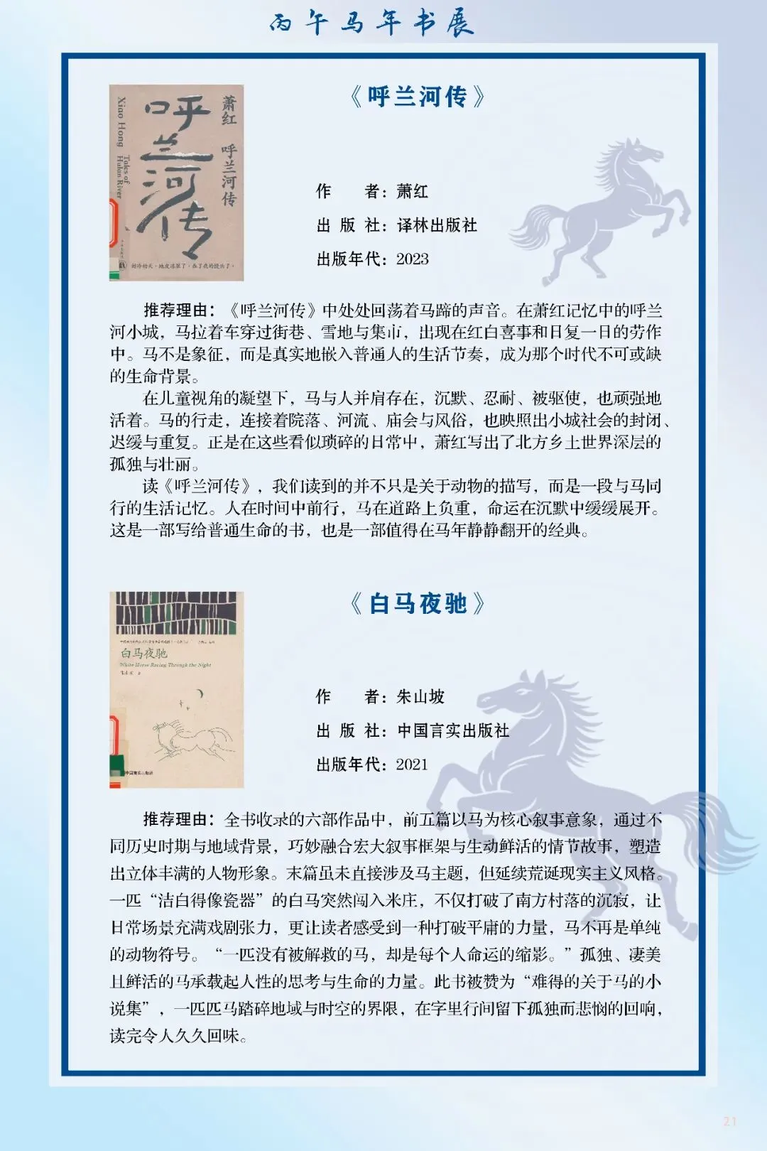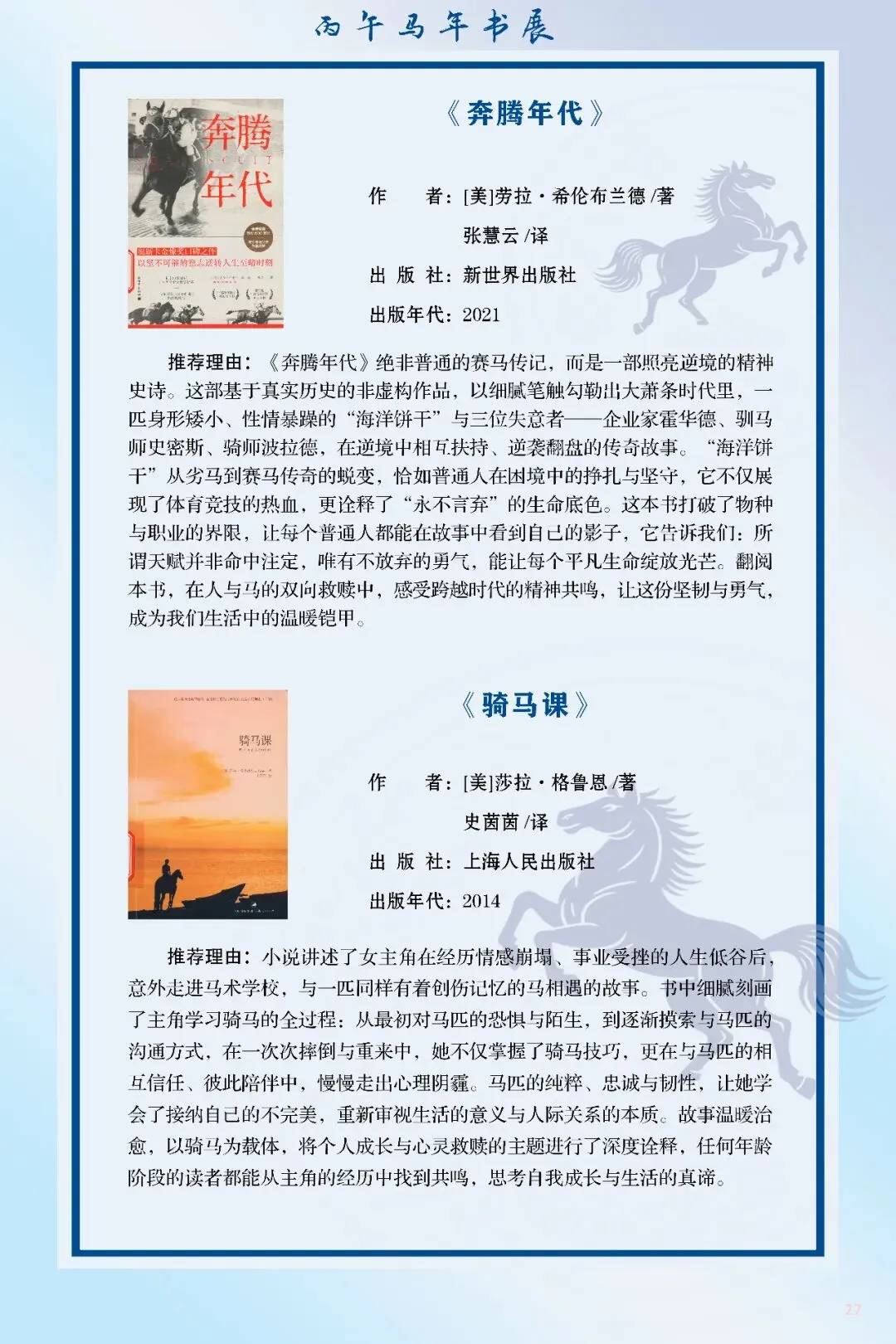 岁启丙午,春润河湟。马,作为高原文明的精神符号,是丝路古道的历史足音,更是中华优秀传统文化中奋进、昂扬、开拓的象征。本次展览由南京图书馆、江苏省图书馆学会、青海省图书馆、青海省图书馆学会、青海图书馆联盟联合举办,既有面向少儿的启蒙读本,以生动趣味引领认知,亦有适合大众的通俗读物,于休闲中收获感悟,更不乏可供深研的专业著述,满足求知者的深度探索。无论年龄几何、兴趣所向,每一位步入此间的“巡游人”,都能在此找到属于自己的“精神坐骑”,从中获得情感的慰藉、思想的升华。