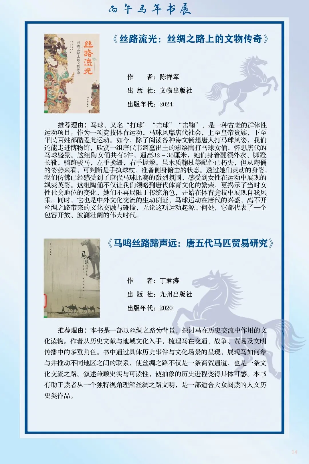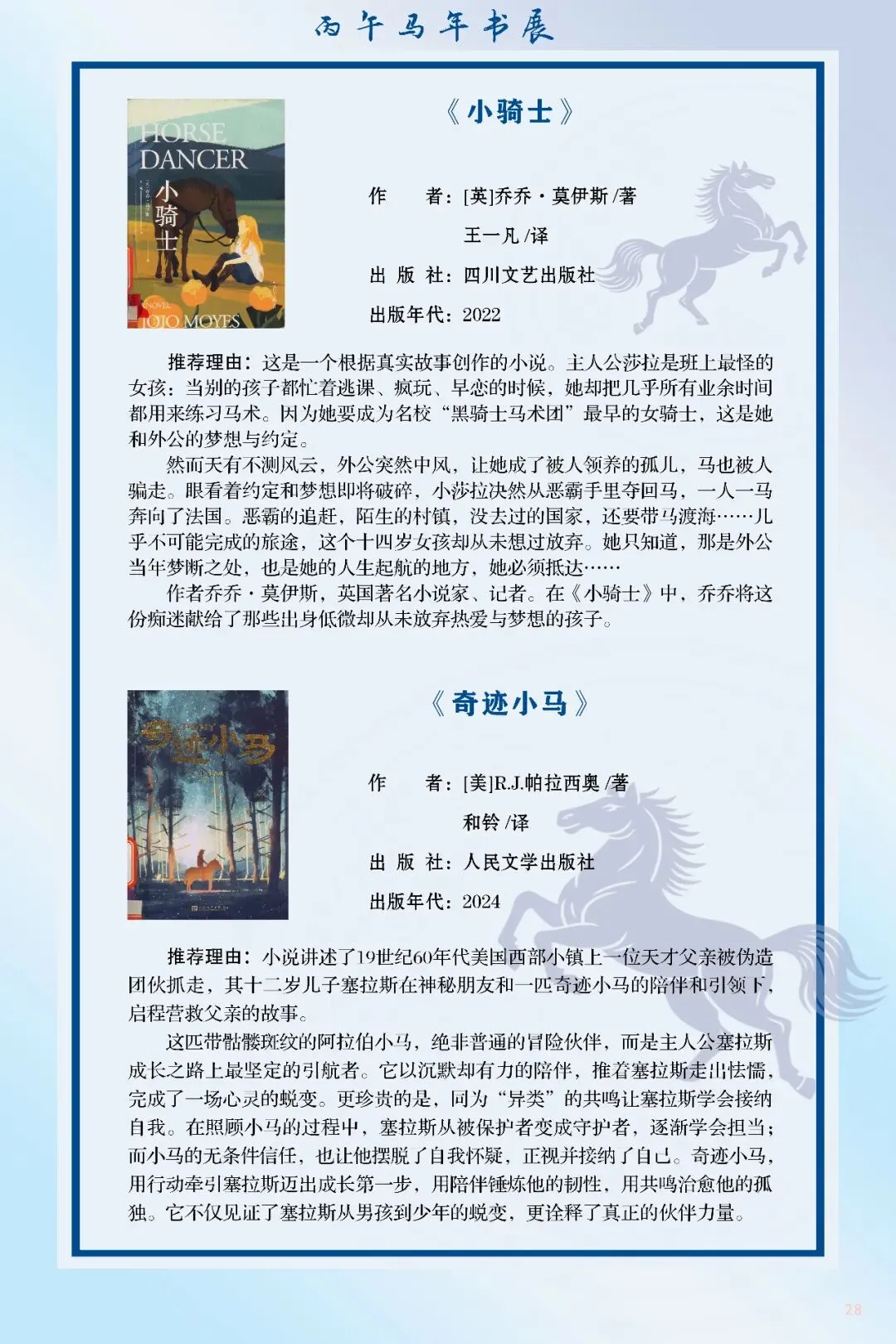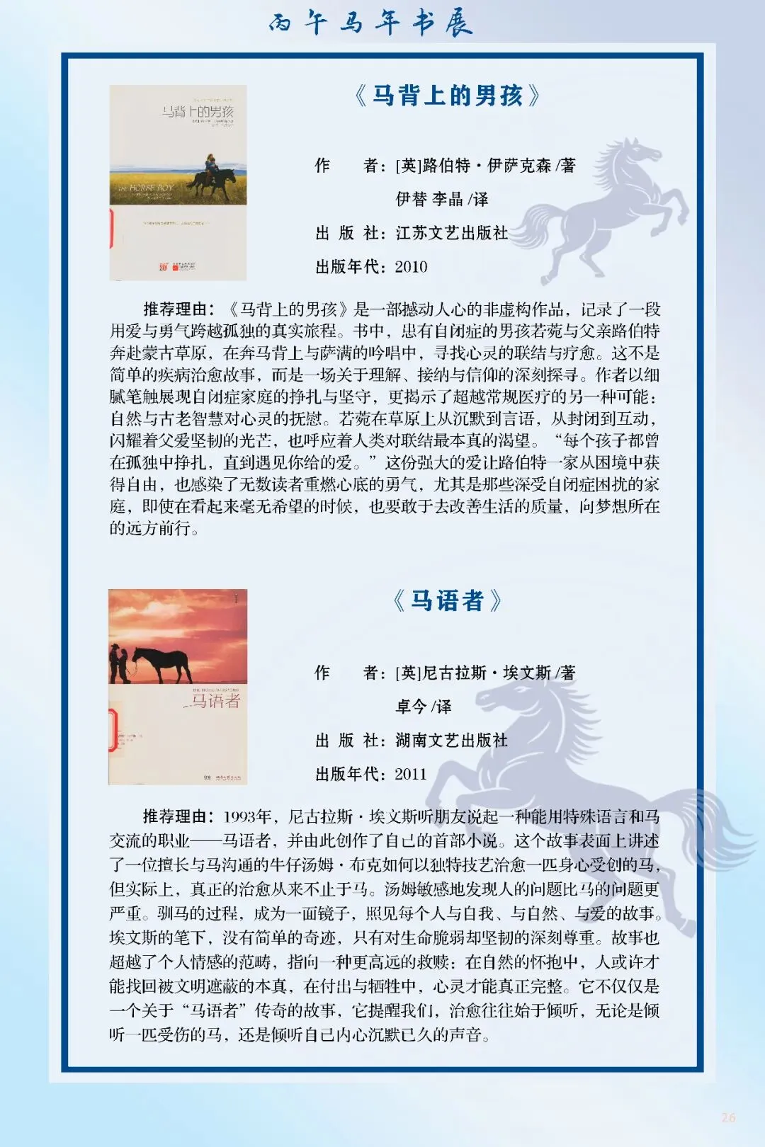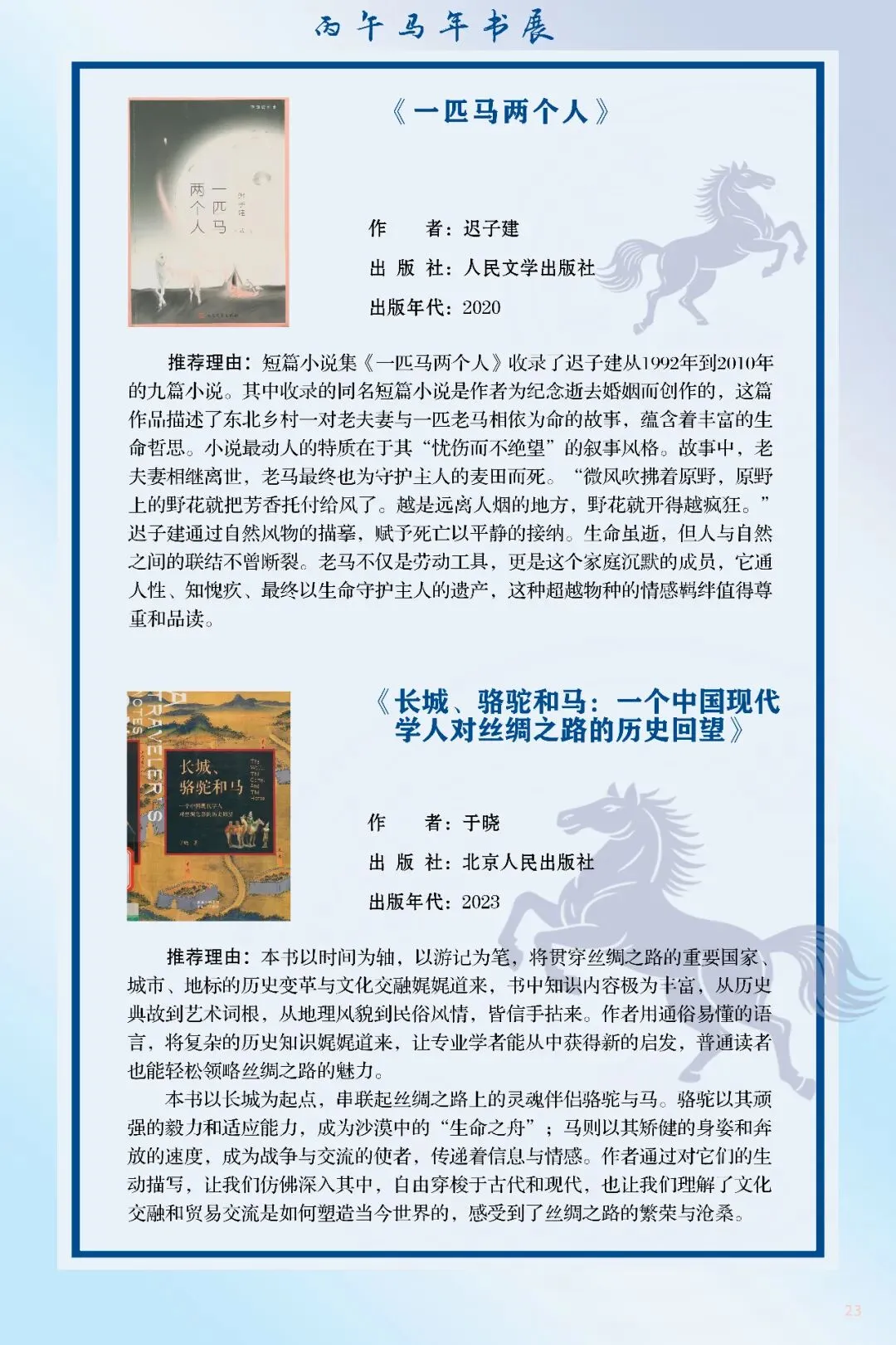 岁启丙午,春润河湟。马,作为高原文明的精神符号,是丝路古道的历史足音,更是中华优秀传统文化中奋进、昂扬、开拓的象征。本次展览由南京图书馆、江苏省图书馆学会、青海省图书馆、青海省图书馆学会、青海图书馆联盟联合举办,既有面向少儿的启蒙读本,以生动趣味引领认知,亦有适合大众的通俗读物,于休闲中收获感悟,更不乏可供深研的专业著述,满足求知者的深度探索。无论年龄几何、兴趣所向,每一位步入此间的“巡游人”,都能在此找到属于自己的“精神坐骑”,从中获得情感的慰藉、思想的升华。