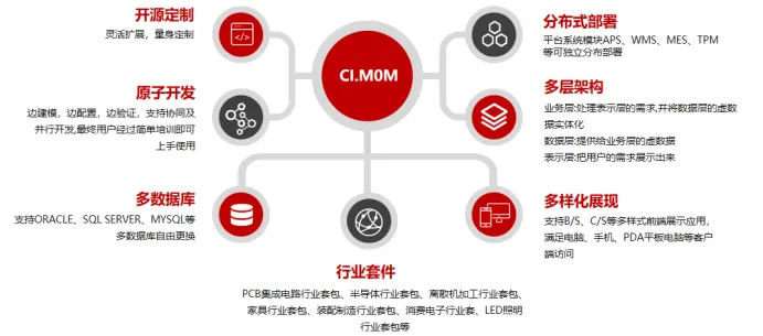 CI.MOM中软智造运营管理平台(简称:CI.MOM)整合各行业生产运营管理业务管理为基础,以生产运行相统一的云智制造平台框架、扩展和细化生产执行、质量追溯和库存管理相关管控,使其与生产运行相互作用,更好地支撑制造数字工厂或智能工厂建设与实施落地。基于中软云智造主体框架进一步向集成化、标准化的方向发展,从而更易于实现内部或外部信息化集成和共享,更便于维护和升级。CI.MOM通过协调管理企业的人员、设备、物料、能源等资源,把原材料或者零件转化为产品的活动。包含管理由物理设备、人员和物料信息系统来执行的行为,并涵盖了管理有关调度、产能、产品定义、历史信息、生产装置信息,以及与相关的资源状况信息的数字化智能化管控。