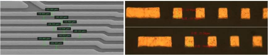 闪蚀(快速蚀刻)添加剂则聚焦SAP、mSAP半加成工艺,专为40μm以下超细线路量身打造,适配硫酸-双氧水体系蚀刻铜药水。通过独家配方添加剂,精准维持蚀刻速率稳定,强效抑制侧蚀,大幅提升纵横蚀刻比,让蚀刻后的线路截面呈现完美矩形,侧边平整光滑,完美适配高端电子器件对超细线路的严苛要求。