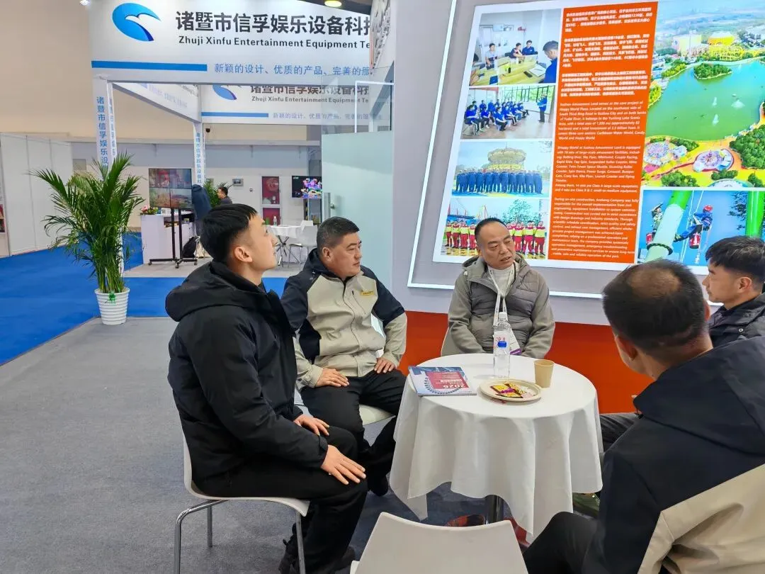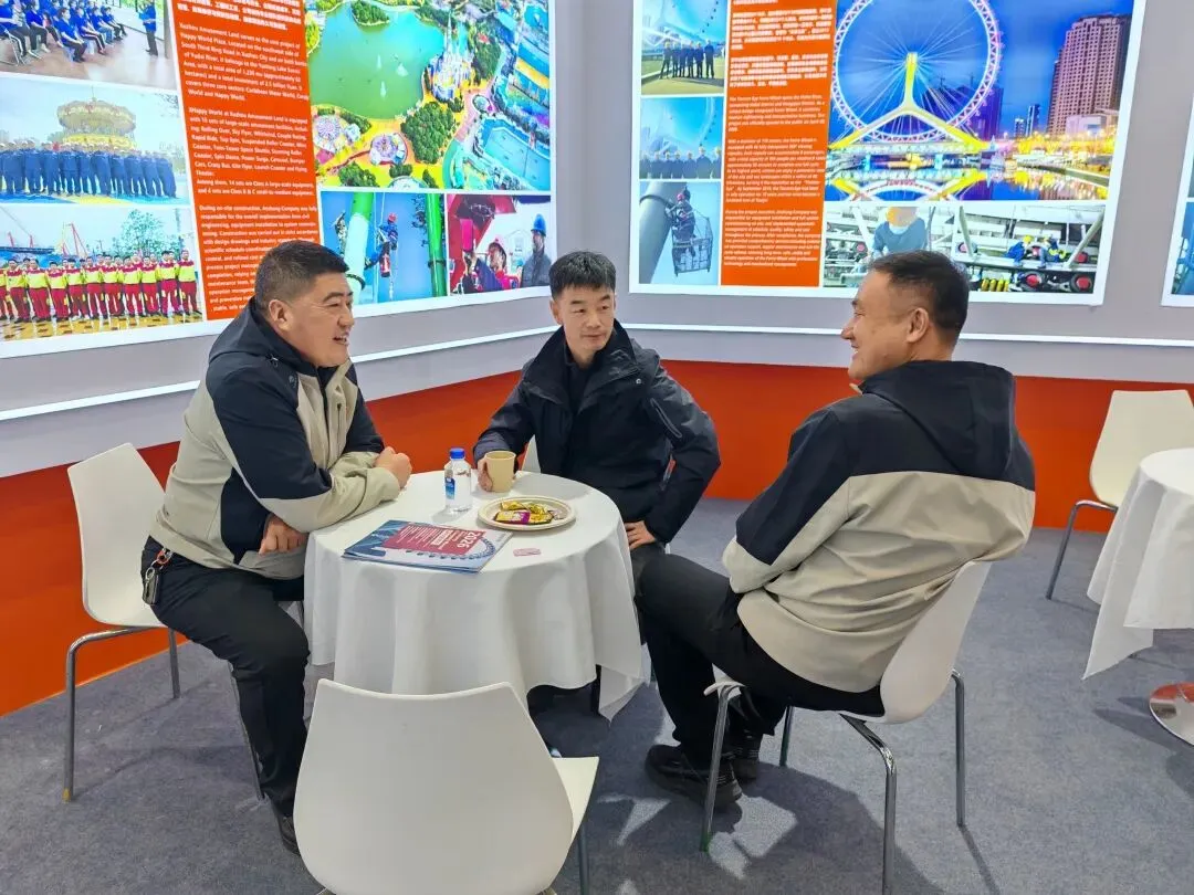 2026北京国际游乐设备展次日,现场人气持续高涨。今日,海外市场代表、天元谷度假区与大连星海广场核心团队莅临我司展位考察交流。