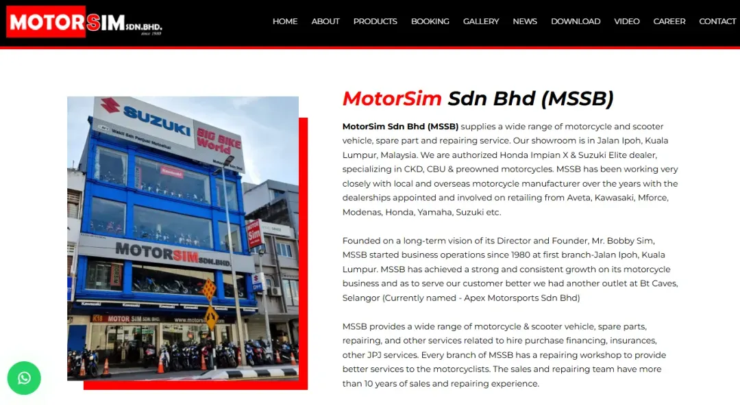 门店提供种类齐全的摩托车和踏板车,包括车辆、零配件、维修以及其他相关服务。每个分店都设有维修车间,销售和维修团队拥有超过10年经验。