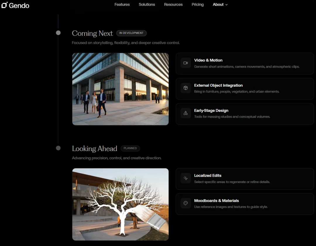更重要的是,在效率层面,Gendo宣称其平台生成高质量建筑可视化图像的速度可比传统流程快 100倍以上。对于建筑事务所而言,这意味着原本需要数天甚至外包完成的工作,现在可以在设计团队内部即时完成。