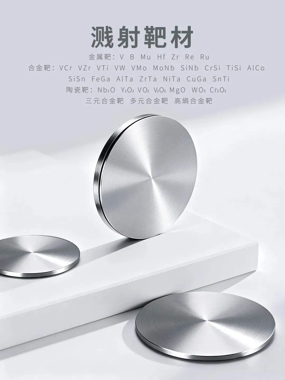 我司是一家专业从事金属粉末、稀有金属、中间合金及溅射靶材研发与生产的金属原材料高新技术企业。公司自主研发建设了多条金属粉末、高纯金属、中间合金生产线及靶材快速烧结生产线,具备从原料到终端产品的全流程生产能力。产品以纯度高、成分均匀性佳、品质稳定性强为核心优势,兼具生产周期短、成本可控、支持按需定制等特点,能够满足多领域客户的差异化需求。