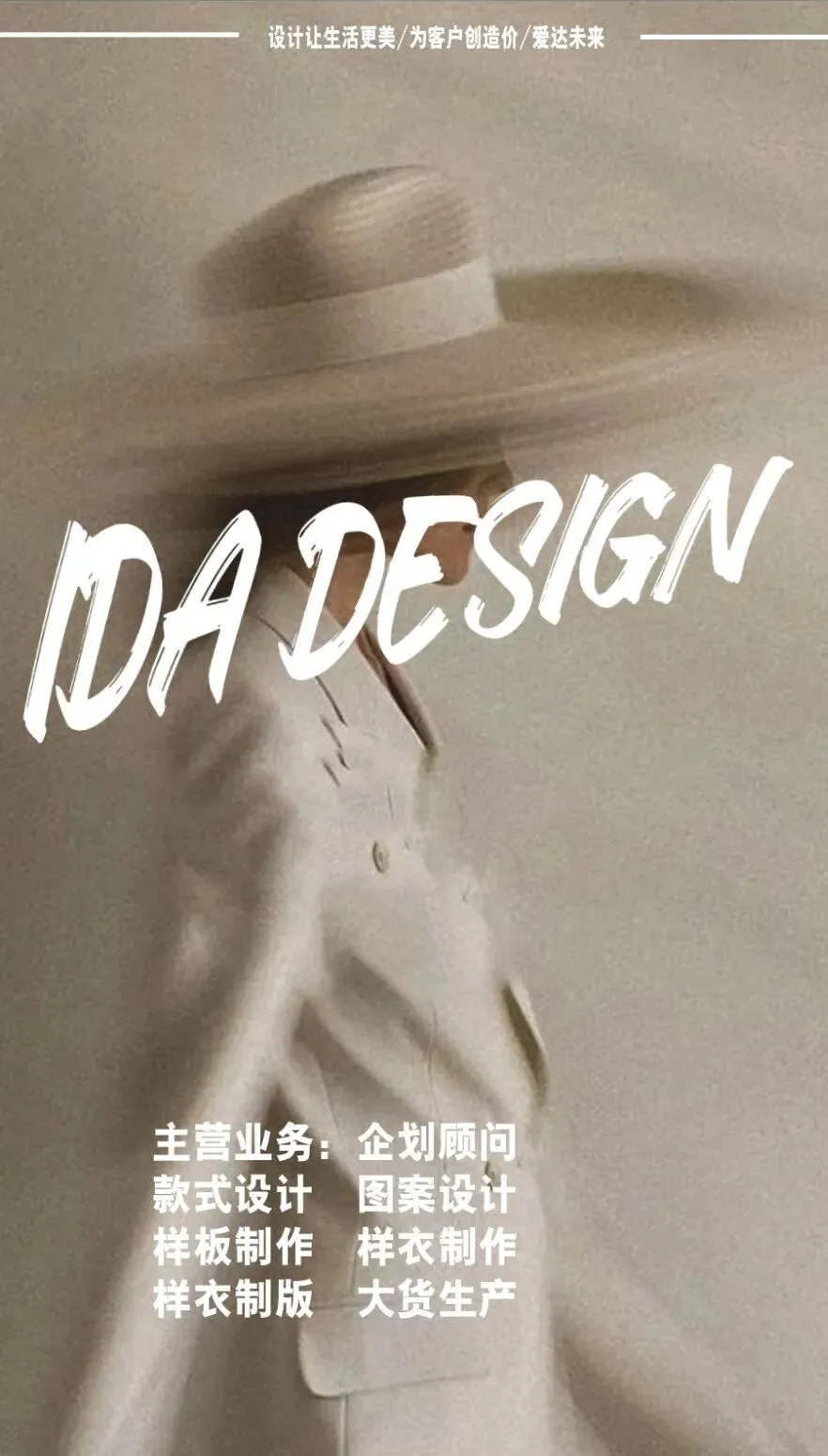 青岛爱达服装设计有限公司是一家集合了服装上下游全产业链经营的公司,公司专注于女装全品类服装的原创设计与产品开发同时提供全面的品牌企划,产品企划,设计企划服务。公司秉承为客户创造价值,爱达未来”的核心理念,致力于从多角度、多方向为客户量身打造独:特的设计方案,力求通过创新设计和优质服务,为客户创造更大的商业价值,共同开创更加辉煌的未来。
