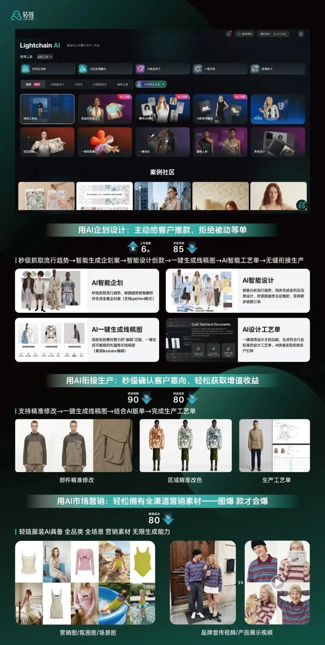 基于生成式AI技术,为企业提供[企划-设计-生产-营销】全链路AI解决方案。