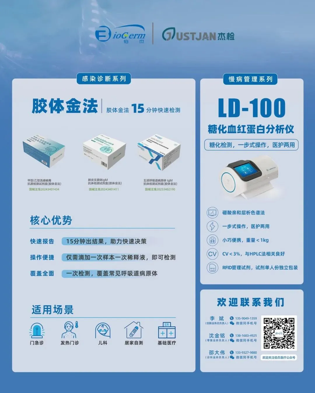 将会展出自主研发的五项呼吸道病原体IgM抗体检测试剂盒。该产品以“一卡五项、一步加样、15分钟快检”为核心特点,直击当前呼吸道感染诊疗痛点,为各级医疗机构提供快速、高效的诊断工具。