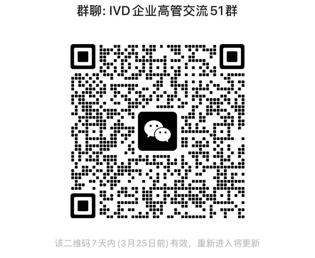 体外诊断观察特成立IVD企业高管交流群,交流IVD行业热点,赶快扫码进群吧!若二维码失效,请扫描文末二维码,添加小编个人微信,小编将邀请您进群。
