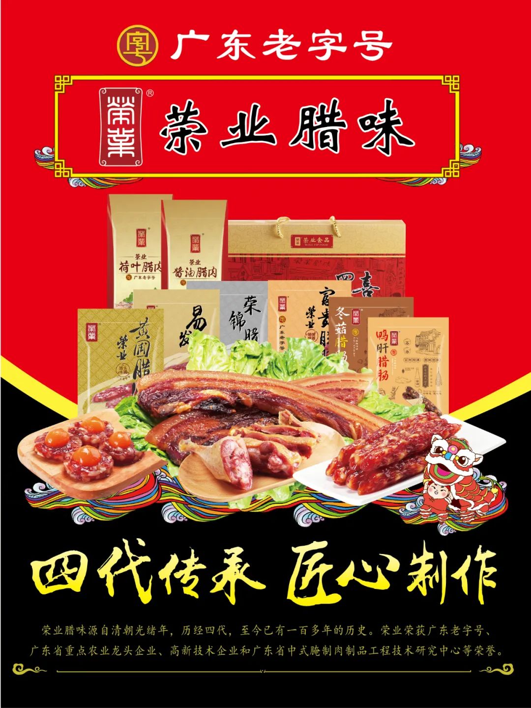 荣业腊味源自清朝光绪年,历经四代,至今已有一百多年的历史。一百多年前,荣业腊味创始人王添福得一腊味秘方,于是开坊售卖,成为老字号。荣业世代以腊味为业,第三代传人更被授予“广式黄圃腊味十大传承人”称号!