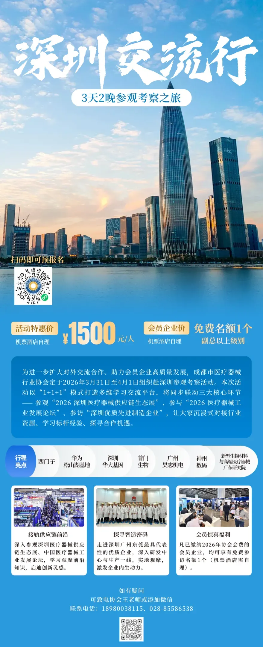 为进一步扩大对外交流合作、助力医疗器械企业高质量发展,成都市医疗器械行业协会与深圳医疗器械供应链生态展主办方诚邀各地同行2026年3月31日- 4月1日赴深圳参观考察活动。