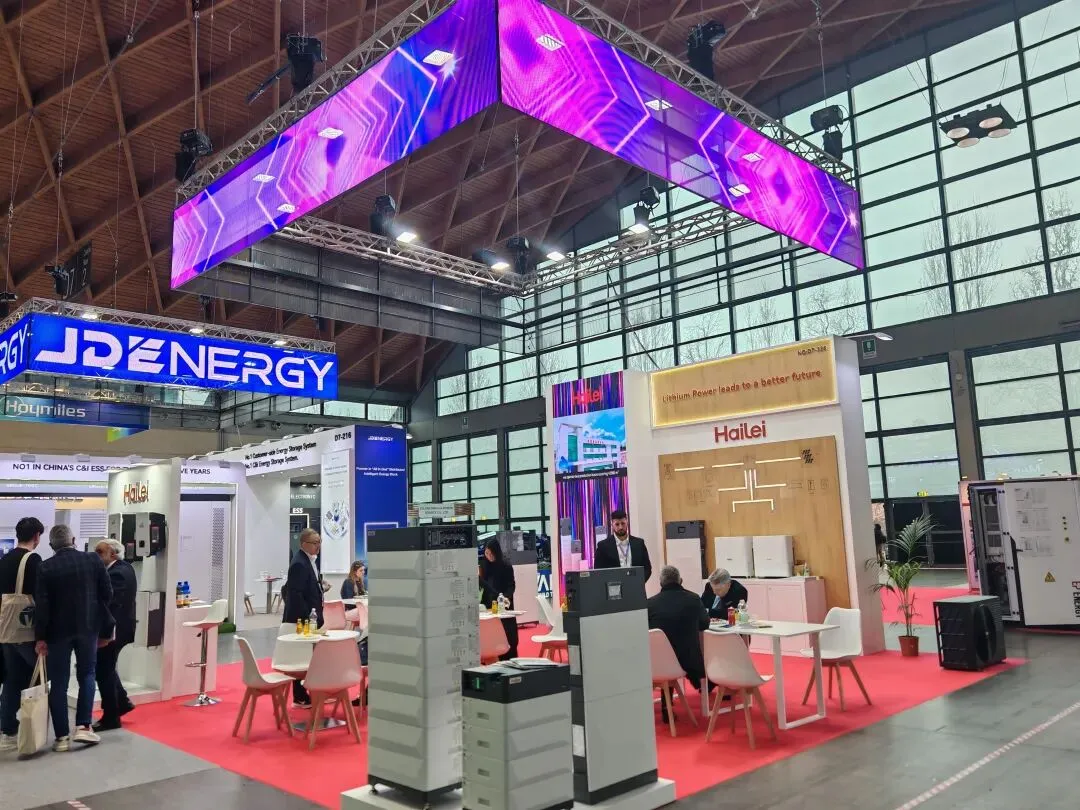 储能作为能源转型的关键环节,已成为中国企业展示综合实力的核心板块。宁德时代、比亚迪、思格、冠隆、正浩、海辰等企业全面展示了从家庭辅助应用到电网级储能的全场景产品矩阵。首次亮相欧洲的JDEnergy发布了eBlock系列储能产品,其eBlock-418A系统AC转换效率超过90%,响应速度达100毫秒以内。