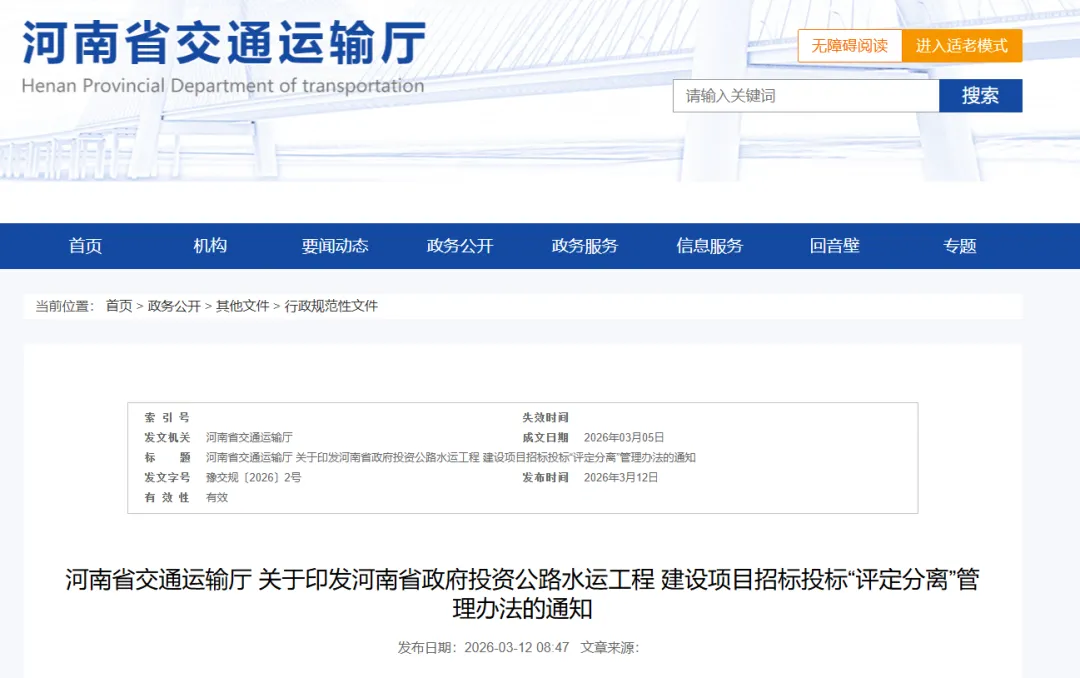 河南省政府投资公路水运工程建设项目招标投标“评定分离”管理办法