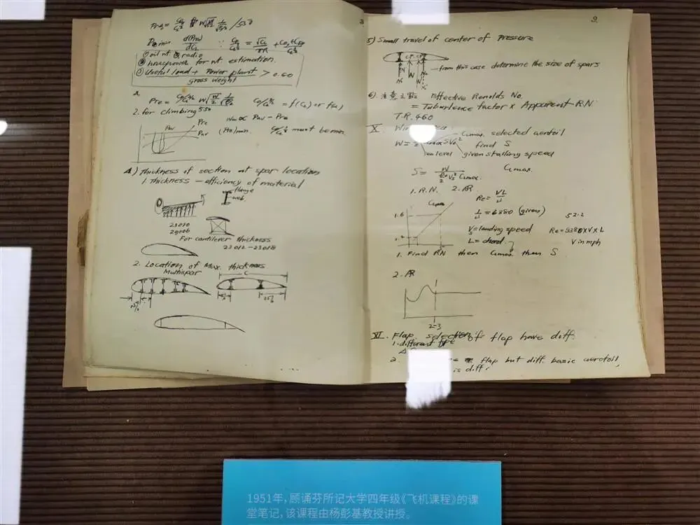2021年是新中国航空事业发展70周年,也是顾诵芬在交大求学毕业70年。日前,“咏其骏烈,诵其清芬”顾诵芬校友事迹专题展览在上海交通大学闵行校区启幕。堪比钱学森学长“水力学试卷”的多份顾氏学霸笔记被一一找出实物:有70年前顾诵芬读大四时《飞机课程》的课堂笔记,有他毕业设计时《飞机设计》的实验报告,还有少年顾诵芬爱读的1933年创刊科普杂志《科学画报》,加之志愿表、成绩册、选课单等,不难探索出这位飞机设计大师、飞机空气动力学家的成才之路。