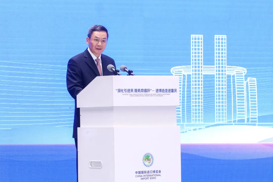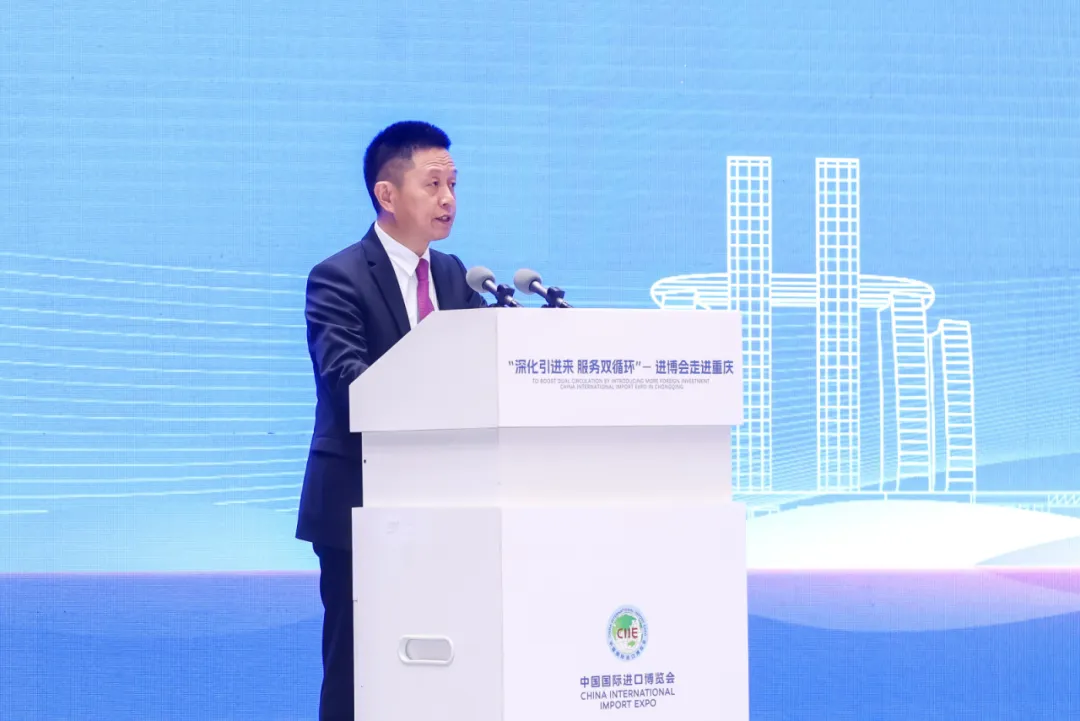 4月2日,商务部和重庆市共同举办“深化引进来 服务双循环”——进博会走进重庆活动。商务部党组成员、部长助理唐文弘出席活动并致辞,重庆市副市长张国智主持,中国银行业务管理总监赵蓉出席。