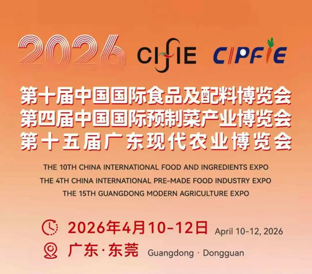 食品人集合啦,2026中国国际食品及配料博览会将于2026年4月10-12日在东莞•广东现代国际展览中心盛大举行。本届展会主题为:食全食美,预见“味”来。贯彻落实中央农村工作会议精神,树立大农业、大食物观,推动产供销有机衔接、一二三产融合发展,打造集贸易促进、合作交流、创新集聚为一体的全产业链服务平台,为全面推进乡村振兴、加快建设农业强国增添新动能。距离展会开幕仅剩21天,下面这份最新参展攻略,助你轻松高效逛展。