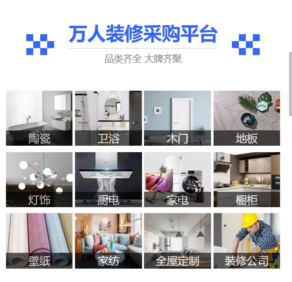 装修材料:涵盖瓷砖、地板、卫浴、门窗、涂料、壁纸等,满足不同装修风格需求。