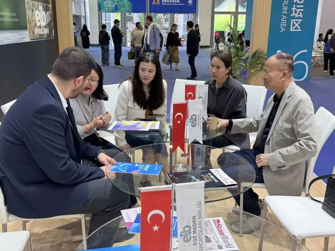 3月18日下午,我会及厦门会展集团、励诚会展公司等相关单位代表,在厦门石材展土耳其展馆与伊兹密尔会展公司、爱琴海出口商协会相关负责人会谈、对接。会谈期间,我方重点推介了厦门咖啡展的办展特色、资源优势。厦门“金砖国家新工业革命展览会”的主办方推介展会核心内容,搭建双方合作沟通桥梁。同时,相关会展公司就会展领域合作事宜与伊兹密尔会展公司进行了初步对接,表达了积极合作意愿。