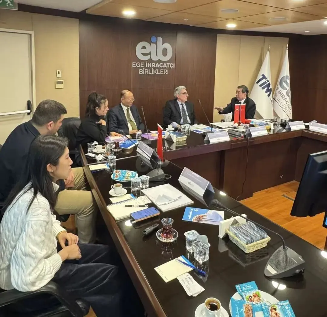 代表团一行拜访了爱琴海出口商协会。该协会下设12个行业分会,汇聚超8000家会员企业,是土耳其爱琴海地区对外经贸合作的重要组织,在推动产品出口、对接国际市场、提升会员企业竞争力等方面发挥着关键作用。座谈中,我方围绕厦门优质会展项目进行全面推介,重点介绍厦门咖啡展、华交会、厦门会展周、链博会等活动,诚挚欢迎爱琴海商会组织会员企业来厦拓市场、谋合作、觅商机。为促进两地企业精准对接,姚会长提出合作倡议:依托厦门经贸信息网,搭建爱琴海商会会员企业的特色产品专区,让厦门企业能够实时查询、精准对接,打造线上经贸交流渠道。爱琴海出口商协会联盟副主席亚尔钦・埃尔坦对该倡议深表赞同,认为此举有利于两地企业深化务实合作,并表示将持续加强与厦门在贸易、会展等领域的联动,推动友城合作走深走实。