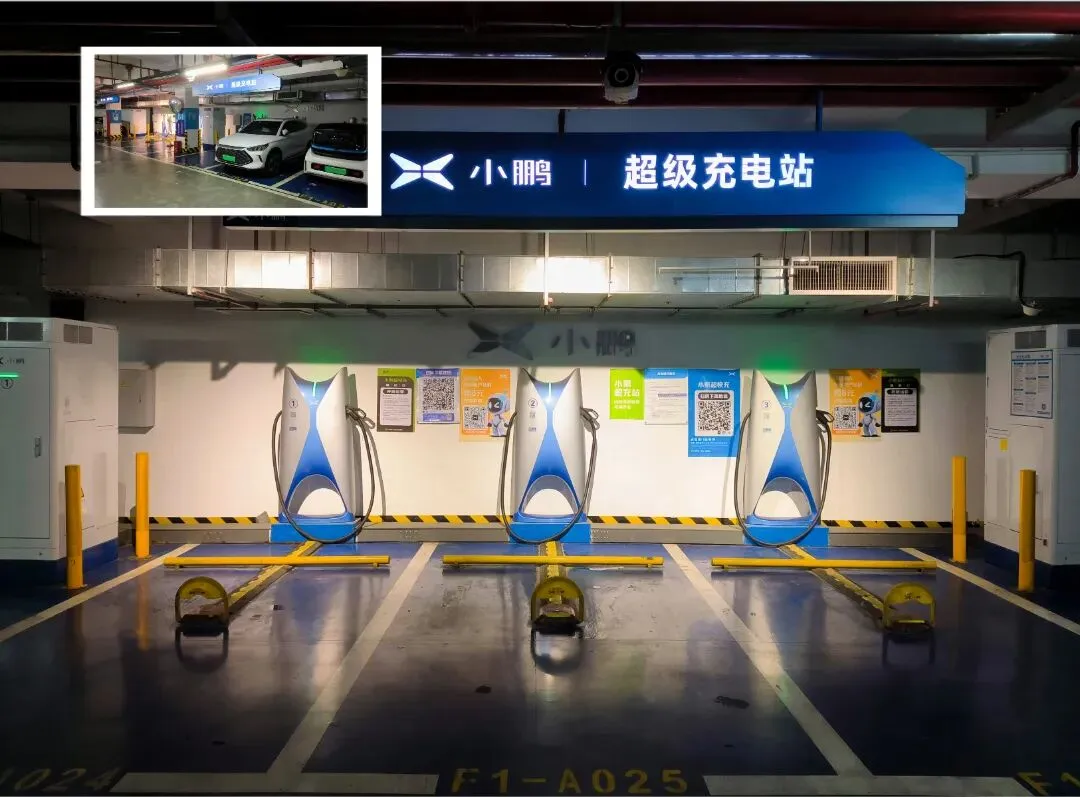 6个小鹏充电车位(其中4个快充车位、2个慢充车位)