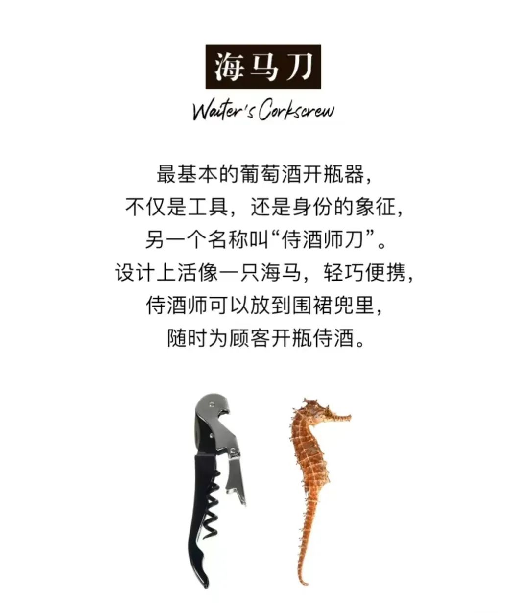 海马刀因为折叠状态下的酒刀外形酷似海马所以被称作“海马刀”。