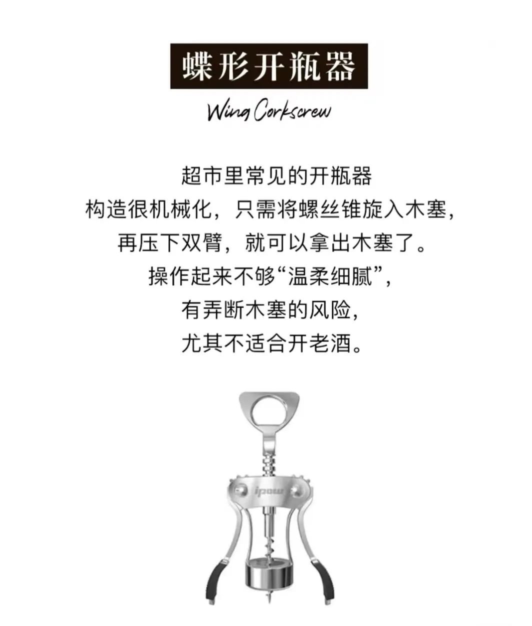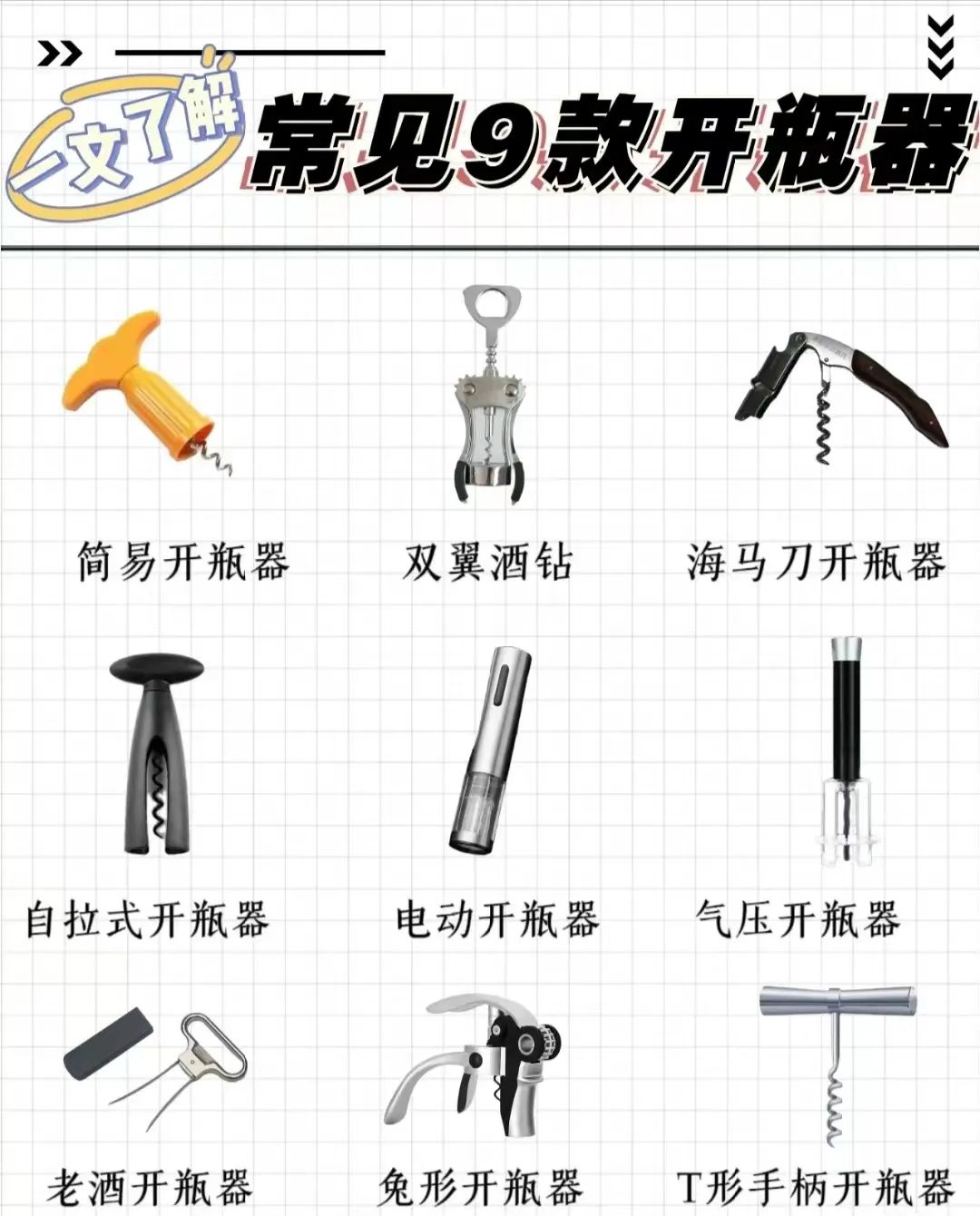 当然,葡萄酒开瓶器也不是一成不变的,为了适应各类各类需求开瓶器也已经发展出了很多品类。