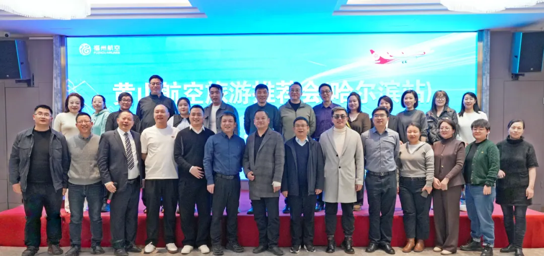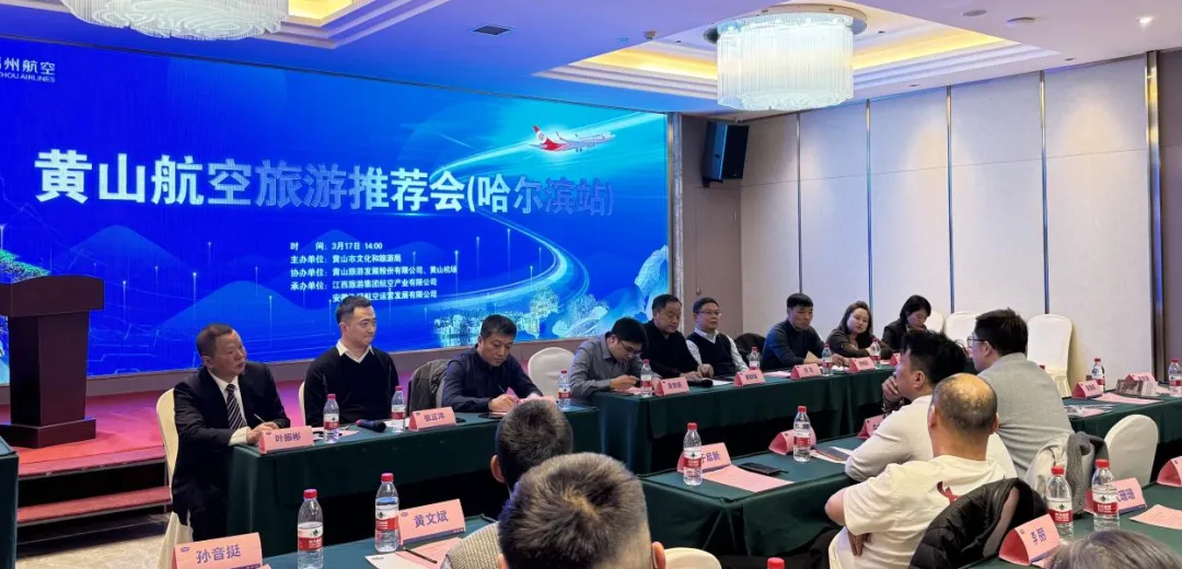 3月17日,由黄山市文化和旅游局主办,长旅集团旗下航空产业公司联合安徽飞扬航空承办的黄山航空旅游推介会在哈尔滨顺利举行。本次活动以“航线搭桥、文旅共融”为主题,福州航空、黄山旅游股份、黄山机场及两地重点旅行社、OTA平台代表等百余人参会,各方围绕航空旅游产品开发、客源互送、市场推广等议题深入交流洽谈,现场达成多项合作共识。