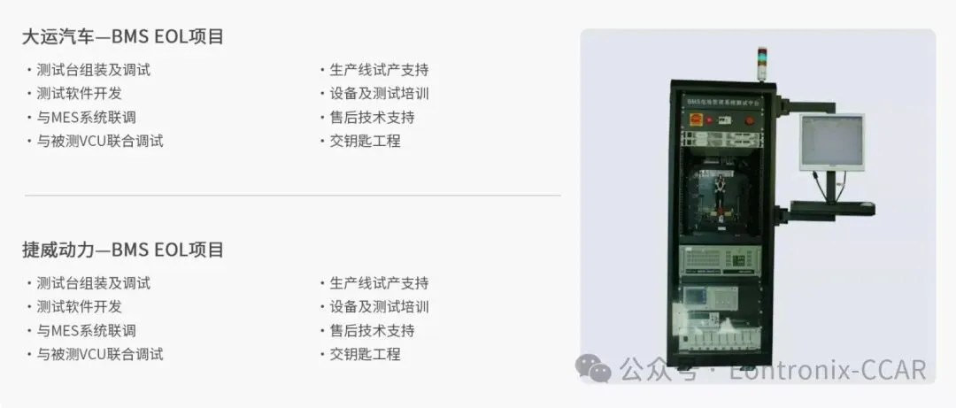 意昂神州基于多年汽车测控领域积累的工程经验,可针对不同测试需求定制开发完整的测试系统,完成BMS成品的下线/入厂测试,即BMS生产线终端(EOL)测试。我们可以提供但不限于以下服务:
