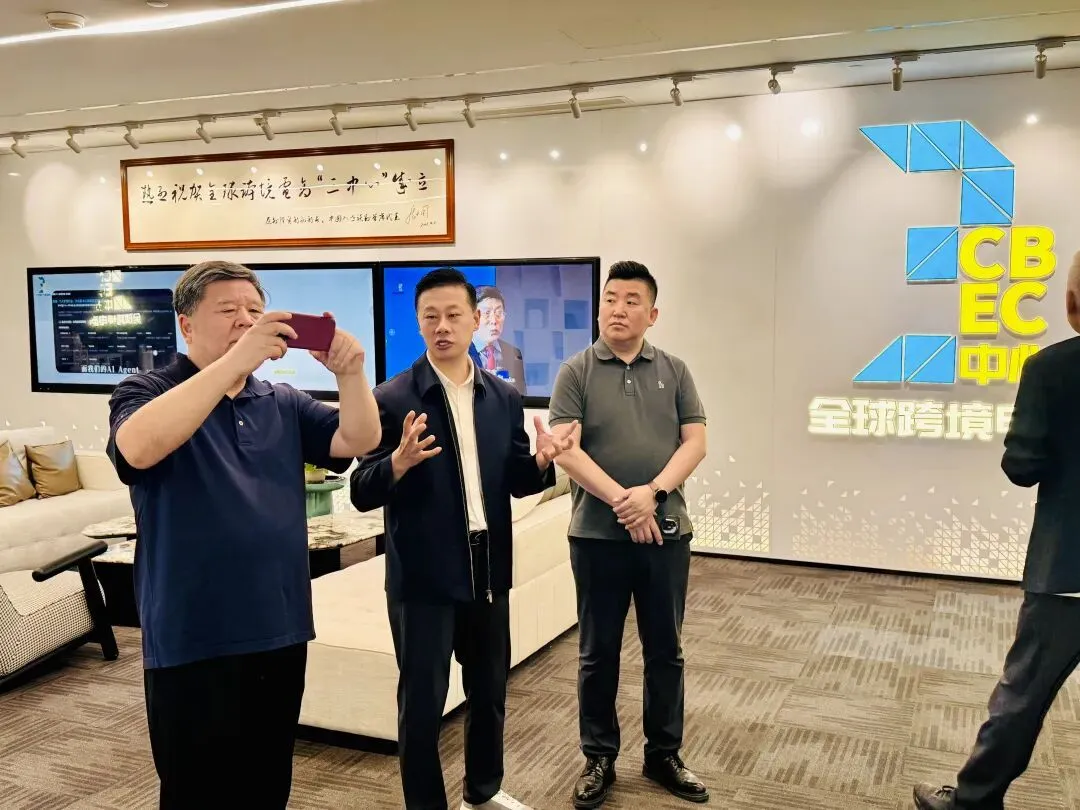 全球跨境电商“三中心”负责人田国锋、全球跨境电商“三中心”核心专家吴学践,全球跨境电商“三中心”产业带合作负责人张榕;