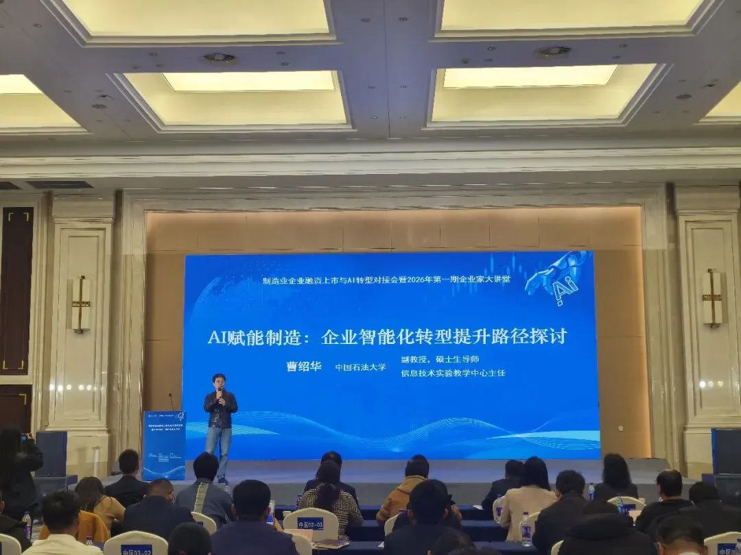 在主题分享环节,中信建投证券投行专家于雷围绕“多层次资本市场助力制造业企业上市融资”进行深度解读,为企业规划上市路径提供专业指导。深交所科技成果与知识产权交易中心市场发展部主管付灵菲就“资本市场赋能产学研投融合发展”做分享,助力企业链接科技与资本市场。中国石油大学计算机科学与技术学院曹绍华教授以“AI赋能制造:企业智能化转型提升路径探讨”为题,从技术应用、转型路径等方面为企业提供可落地的实践方案。