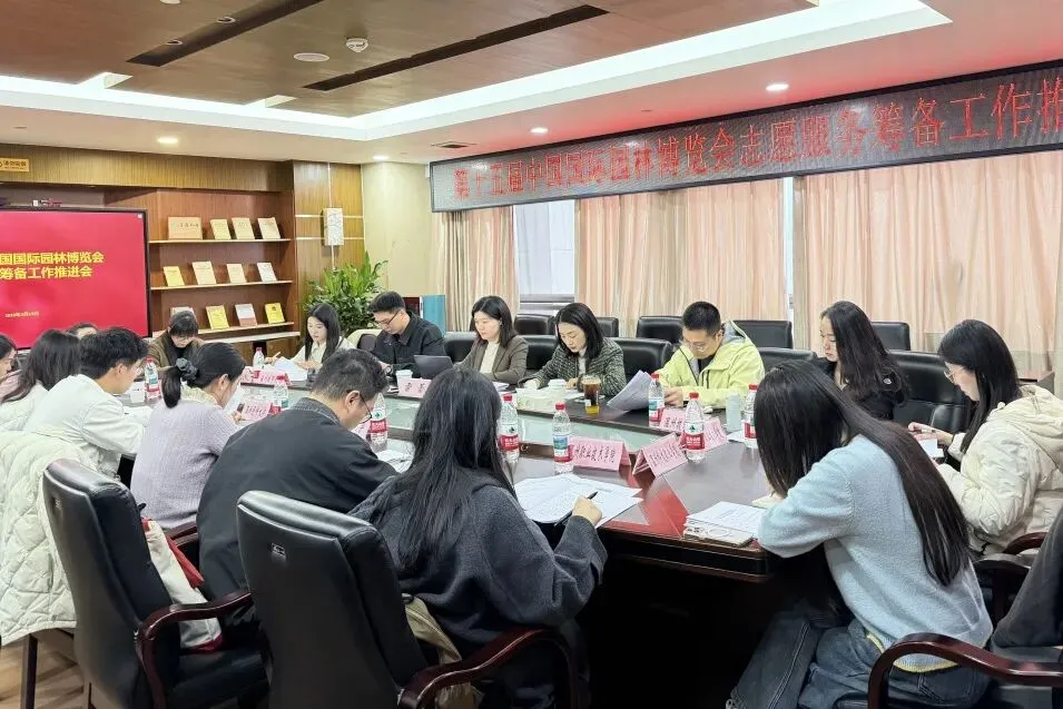 团市委志工权益部负责人传达第十五届中国国际园林博览会筹办攻坚冲刺会议精神。园博会志愿服务组详细介绍本届园博会志愿服务总体方案,包括志愿者招募选拔、培训体系、岗位安排及后勤保障等内容,进一步明确了各参与方的职责分工。随后,各高校团委分管志愿服务工作同志围绕岗位落实、流程衔接、应急处理等具体问题开展了深入交流。