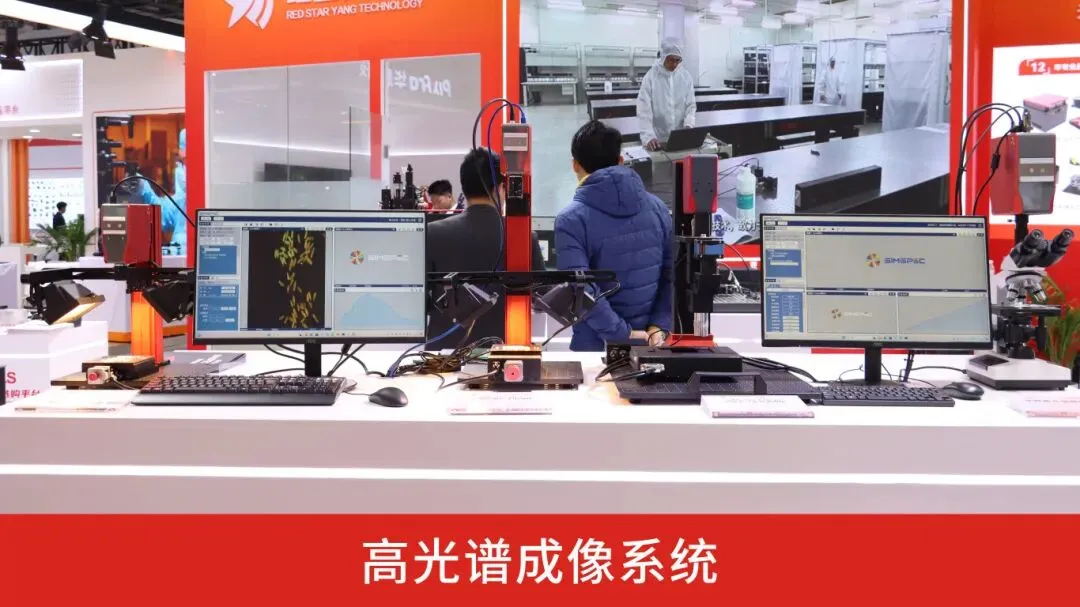 除了静态元件展示外,更带来四轴复合运动平台、MINI驱控器、SIMSPEC桌面便携式高光谱成像系统、显微高光谱相机系统、光斑聚芒演示系统、功率驭流演示系统、PLC光波导视准耦合装备等模块化与系统动态演示。
