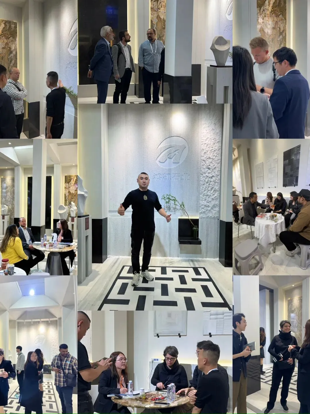 作为石材行业的领军人物,刘良董事长在鸿凯展位停留许久。他认真观看每一款石材的纹理细节,询问工艺特点,与鸿凯团队交流设计理念和应用场景。那一幕幕专注的神情、一次次点头赞许,被镜头一一记录,更被我们深深铭记。