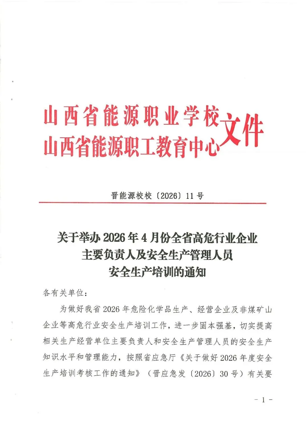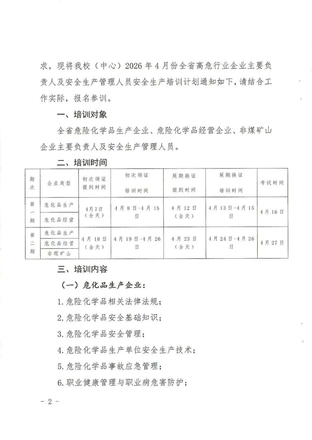 关于举办2026年4月份全省高危行业企业主要负责人及安全生产管理人员安全生产培训的通知