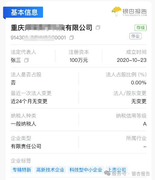 不要靠感觉,要靠报告。你需要一份完整的企业画像,来辅助你的决策。【银杏报告】专为解决企业信息盲区而生。一分钟生成,清晰全面的查看核心数据: