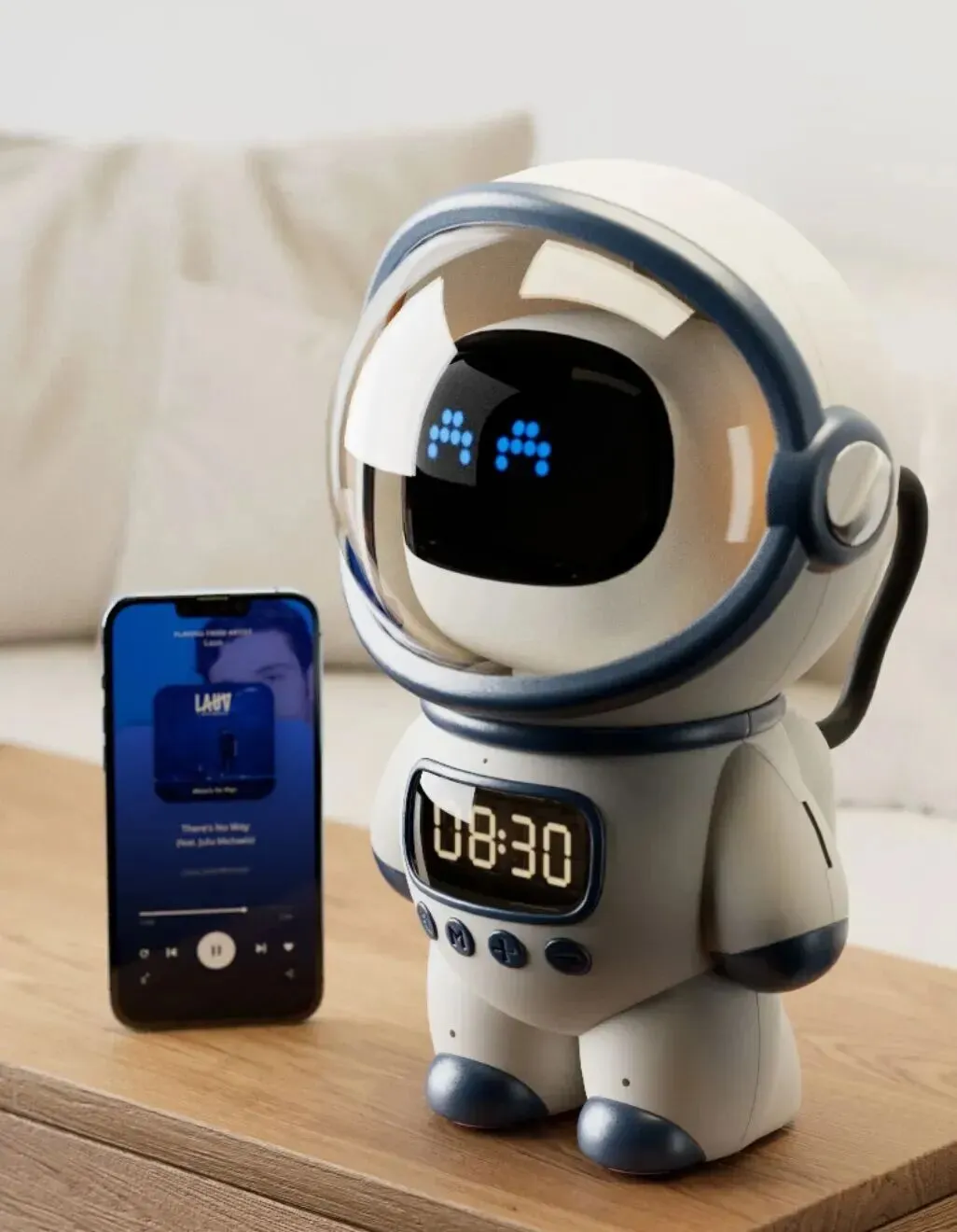 韵果宇航员WIFI音箱,萌系AI音箱新品,宇航员造型吸睛又出片,融合豆包AI、文心及DeepSeek大模型,支持WIFI+蓝牙双连接,音质清晰,可陪聊、点歌、答疑,趣味交互拉满,居家、桌面摆放皆合适。