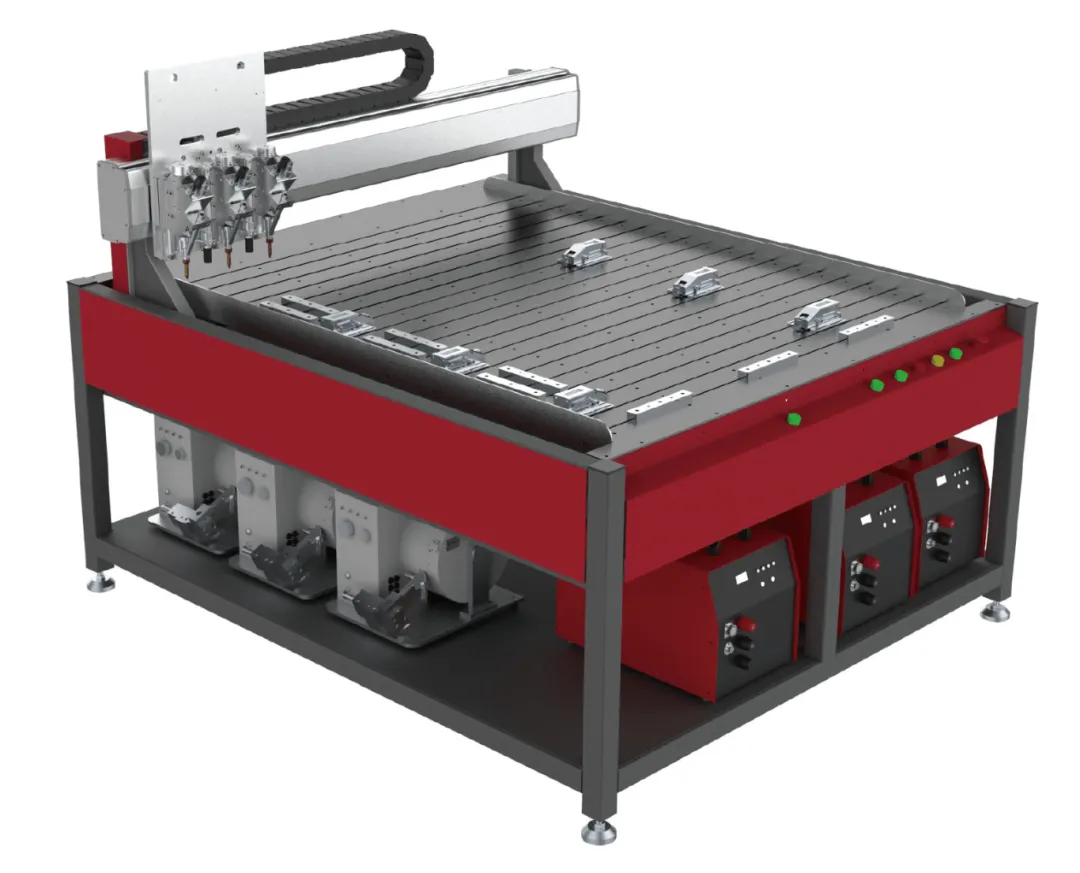 CNC 螺柱焊接系统(自动螺柱焊接平台)是一种高精度、高效率全自动数控螺柱焊接装置。X、Y轴传动均采用高精度滚珠丝杆线性模组,运行稳定,定位精度高,使用寿命长;控制系统采用工业级PC或PLC或驱控一体,可搭载储能螺柱焊机或拉弧式螺柱焊机,以适应不同的焊接需求。Z轴可选择气动或电动伺服驱动,可配置一个或多个焊接终端,以满足不同领域的个性化需求。